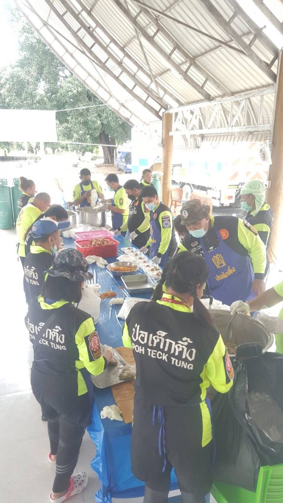 วานนี้ (วันจันทร์ที่ 18 ตุลาคม 64) นายวิเชียร เตชะไพบูลย์ ประธานกรรมการ มูลนิธิป่อเต็กตึ๊ง มอบหมายให้ทีมบรรเทาสาธารณภัย นำโดย คุณสมบูลย์ ขวัญอ่วม หัวหน้าแผนกบรรเทาสาธารณภัย นำทีมกู้ภัย กู้ชีพ อาสาสมัคร พร้อมอุปกรณ์ เรือท้องแบน โรงครัวเคลื่อนที่ และอาหารสุนัขและแมว ออกเดินทางจากกรุงเทพฯ มุ่งหน้าสู่พื้นที่เร่งให้การช่วยเหลือประชาชนในพื้นที่ประสบภัยทันที โดย จัดตั้งกองอำนวยการและโรงครัวเคลื่อนที่ประกอบอาหารปรุงสุก ณ วัดเขามุสิการาม อ.หนองปรือ จ.กาญจนบุรี โดยเมื่อช่วงเช้าที่ผ่านมา มูลนิธิฯ ได้จัดทีมกู้ชีพ กู้ภัย ออกสำรวจพื้นที่ประสบภัยในพื้นที่อำเภอบ่อพลอย จังหวัดกาญจนบุรี
