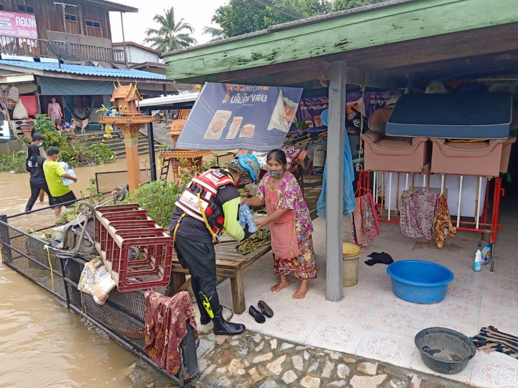 และในช่วงเช้าวันนี้ (19 ตุลาคม 64) ทีมบรรเทาสาธารณภัยมูลนิธิฯ ได้จัดทีมกู้ชีพ กู้ภัย นำอาหารปรุงสุกบรรจุกล่อง พร้อมน้ำดื่ม ชุดยาเวชภัณฑ์ และอาหารสุนัขและแมวจำนวนหนึ่ง บรรทุกเรือท้องแบนลงพื้นที่แจกจ่ายให้ผู้ประสบภัยในพื้นที่ชุมชนท่าม่วง ชุมชนอดุลกาญจนกิจ และชุมชนมุสิก หมู่1 ต.หนองปรือ อ.หนองปรือ และในเวลาเดียวกันนี้ทีมมบรรเทาสาธารณภัย ได้จัดทีมลงพื้นที่หมู่ 2 อำเภอบ่อพลอย และหมู่ 2 ต.หนองกุ่ม เข้าอพยพประชาชน รวมทั้งผู้ป่วยออกจากพื้นที่ประสบภัยไปยังพื้นที่ปลอดภัย