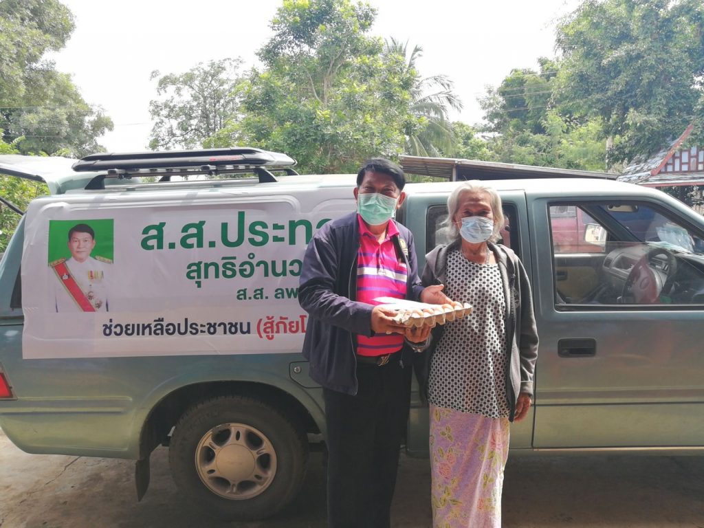 ลงพื้นที่ ให้กำลังใจ และมอบ “ไข่ไก่” พร้อมด้วย หน้ากากอนามัย ให้กับประชาชน