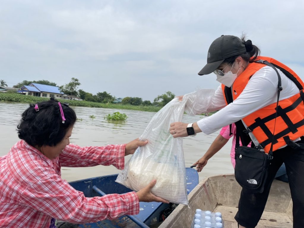 “ถือเป็นครั้งที่ 2 ที่มาร่วมแจกกับพี่กบค่ะ ได้เห็นความเดือดร้อนของชาวบ้าน บางจุดน้ำก็ท่วมสูงมาก เรานั่งเรือไปแจกตามบ้านแต่ละบ้าน พวกเขาก็ใช้ชีวิตด้วยความลำบาก แคทก็ขอเป็นกำลังใจให้ทุกๆ ท่านวิกฤตนี้ไปโดยเร็ว และถ้าแคทมีโอกาสช่วยเหลือหรือบรรเทาความเดือดร้อน แคทก็ยินดีทำอย่างเต็มที่ค่ะ”