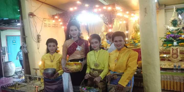 เดือน.11).เพื่อเป็นพุทธบูชา.พระอธิการจรัญ ธัมมธโร.เจ้าอาวาสฯ รับบาตร.หน้าขบวนเป็นเหล่า.นางฟ้า.โปรยดอกไม้/รำฟ้อน.ข้าวต้มมัด/ข้าวต้มลูกโยน.มีความสำคัญในประเพณี.ตักบาตรเทโวฯนี้.ทุกบ้านจะ.ห่อข้าวต้มมัด.เพื่อไปทำบุญ/แจก-แลกเปลี่ยน.ลูกหลานที่ออกเรือน/อยู่บ้านไกล.ก็จะกลับบ้าน.เพื่อรวมญาติ/ไปทำบุญ.ตักบาตรโดยพร้อมเพรียง..สุขของพุทธศาสนิกถิ่นชนบท..