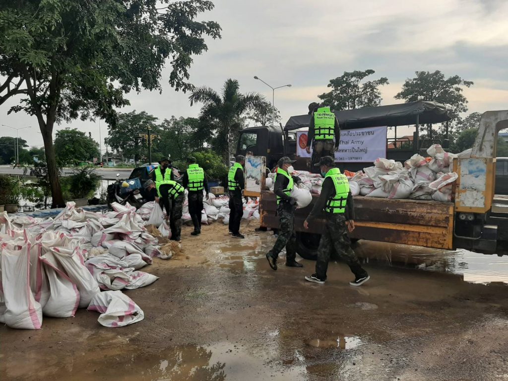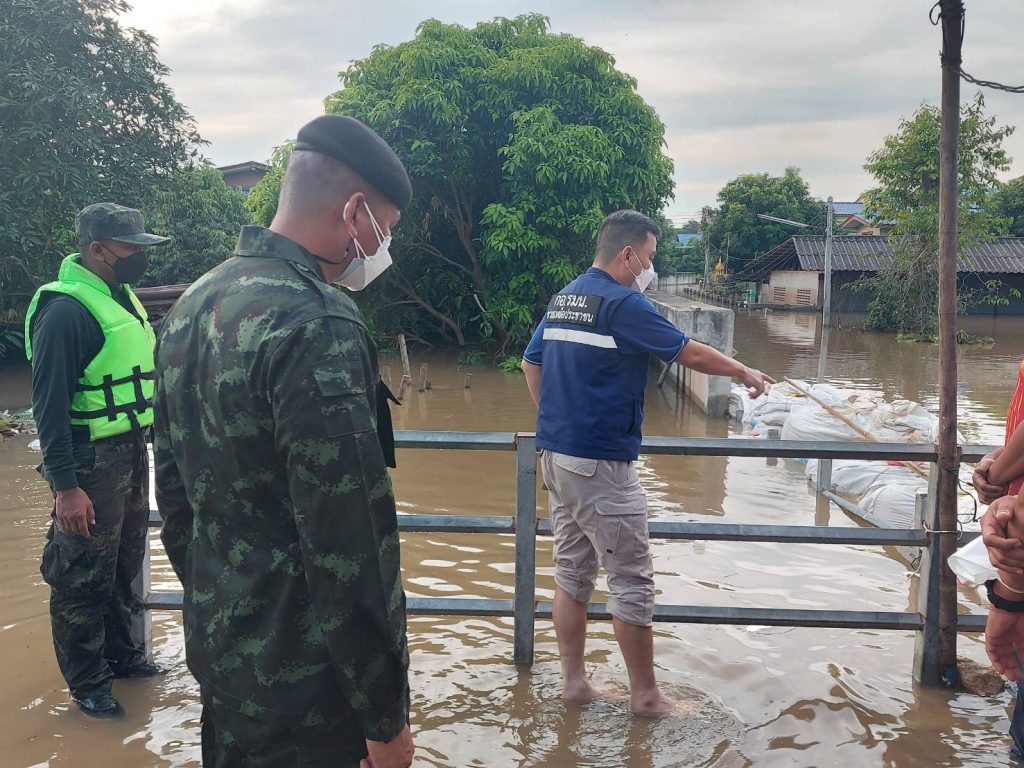บริเวณพื้นที่ วัดปราสาท อ.อินทร์บุรี จ.สิงห์บุรี นำกำลังพล เพื่อช่วยแก้ไขปัญหาอุทกภัย กรณีแนวคันกั้นน้ำชั่วคราว (แนวกระสอบทราย) ที่กั้นช่วงรอยต่อพนังกั้นน้ำแม่น้ำเจ้าพระยากับชุมชนเขตเทศบาลตำบลอินทร์บุรี พังเป็นเหตุให้มวลน้ำจากแม่น้ำเจ้าพระยาทะลักเข้าท่วมชุมชน เขตเศรษฐกิจ ของ อ.อินทร์บุรี มีประชาชนได้รับผลกระทบในหมู่ที่ 3 และหมู่ที่ 4 ต.อินทร์บุรี อ.อินทร์บุรี ประมาณ 820 หลังคาเรือน ได้ร่วม หารือ วางแผน กำหนดแนวทางแก้ไข