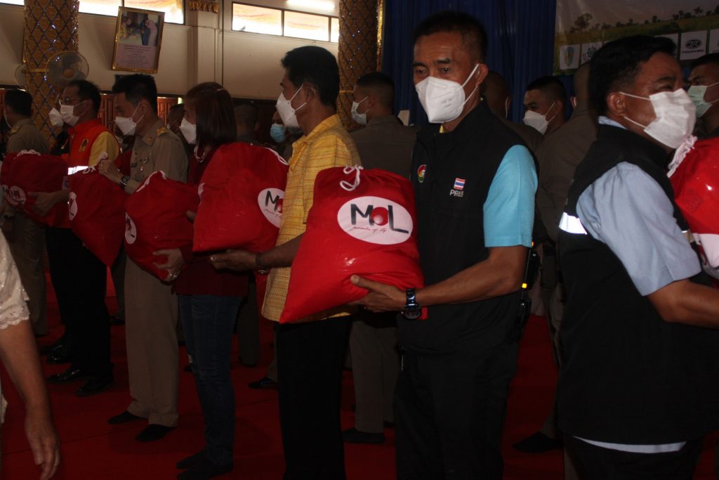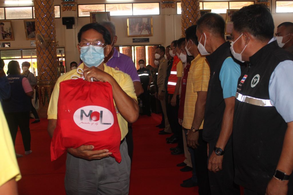 เมื่อเวลา 13 นาฬิกา ของวันที่ 23 ตุลาคม 2564 ที่ศาลาการเปรียญวัดกัทลีพนาราม หรือวัดบ้านกล้วย ตำบลบ้านกล้วย อำเภอบ้านหมี่ จังหวัดลพบุรี ร้อยตำรวจโท ดร.มนัส โนนุช ประธานมูลนิธิมิราเคิล ออฟไลฟ์ เป็นประธานในพิธีมอบถุงยังชีพ ตามโครงการ “หนึ่งใจ…ช่วยเหลือผู้ประสบภัย” ซึ่งมูลนิธิมิราเคิล ออฟไลฟ์ ร่วมกับสภาสังคมสงเคราะห์แห่งประเทศไทย ในพระบรมราชูปถัมภ์ สำนักงานตำรวจแห่งชาติ คณะ วปอ.55 และหน่วยงานในจังหวัดลพบุรี ร่วมกันจัดขึ้น เพื่อช่วยเหลือผู้ประสบอุทกภัยในพื้นที่ตำบลบ้านกล้วย ตำบลพุคา และตำบลดงพลับ อำเภอบ้านหมี่ จังหวัดลพบุรี โดยมีนายสุภกิณห์ แวงชิน รองผู้ว่าราชการจังหวัดลพบุรี พร้อมด้วยนายธีรเมธ เทพพิชัยศิลปกุล นายอำเภอบ้านหมี่ และหน่วยงานราชการที่เกี่ยวข้อง ร่วมมอบถุงยังชีพ จำนวน 500 ชุด ให้แก่ตัวแทนผู้ประสบภัยน้ำท่วม เพื่อนำไปมอบให้กับประชาชนผู้ที่ประสบภัยน้ำท่วมในพื้นที่ตำบลดงพลับ จำวน 100 ชุด ตำบลพุคา จำนวน 100 ชุด ตำบลบ้านกล้วย จำนวน 300 ชุด ในพื้นที่ 3 ตำบล ของอำเภอบ้านหมี่ จังหวัดลพบุรี เพื่อบรรเทาความเดือดร้อนให้กับประชาชน จากนั้น ได้ลงพื้นที่มอบถุงยังชีพให้กับ นายคำพันธ์ แสนสุข ผู้สูงอายุ บ้านเลขที่ 49 หมู่ที่ 9 ตำบลบ้านกล้วย อำเภอบ้านหมี่ นางเวิน บอกบุญ ผู้สูงอายุ อยู่บ้านเลขที่ 119 หมู่ที่ 4 ตำบลบ้านกล้วย อำเภอบ้านหมี่ นางรัศมี โสภา ผู้สูงอายุ อยู่บ้านเลขที่ 48/1 หมู่ที่ 4 ตำบลบ้านกล้วย อำเภอบ้านหมี่ นางพัชนี ทองนาค ผู้สูงอายุ อยู่บ้านเลขที่ 165 หมู่ที่ 5 ตำบลข้านกล้วย อำเภอบ้านหมี่ และนางส่วน ควรชอบ ผู้สูงอายุ อยู่บ้านเลขที่ 3/1 หมู่ที่ 5 ตำบลบ้านกล้วย อำเภอบ้านหมี่ จังหวัดลพบุรี ทั้งนี้ สถานการณ์อุทกภัยที่เกิดขึ้นในพื้นที่อำเภอบ้านหมี่ จังหวัดลพบุรี ในระลอกที่หนึ่งและในระลอกสอง รวม 11 ตำบล 73 หมู่บ้าน 7979 ครัวเรือน ประชากร 23,208 คน พื้นที่ทางการเกษตร จำนวน 41,241 ไร่ ซึ่งทางผู้ว่าราชการจังหวัดลพบุรี ได้มอบหมายให้หน่วยงานที่เกี่ยวข้อง และองค์กรปกครองส่วนท้องถิ่น ได้เข้าสำรวจความเสียหายและเข้าไปดำเนินการให้ความช่วยเหลือในเบื้องต้นแล้ว