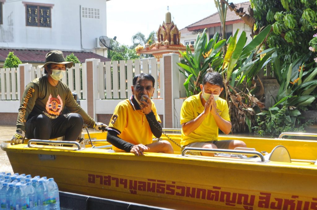 เมื่อเวลา 14.00 น.ของวันนี้ วันจันทร์ที่ 25 ตุลาคม 2564 นายชัยวุฒิ ธนาคมานุสรณ์ รัฐมนตรีว่าการกระทรวงดิจิทัลเพื่อเศรษฐกิจ และสังคม พร้อมด้วย สส.โชติวุฒิ ธนาคมานุสรณ์ สมาชิกสภาผู้แทนราษฎร์ จ.สิงห์บุรี ได้ลงพื้นที่ชุมชนบางแคนอกบางแคใน อ.เมือง จ.สิงห์บุรี โดยใช้เรือเล็กเป็นพาหนะในการเดินทาง เพื่อแจกจ่ายน้ำดื่มแพคใหญ่ ให้แก่ครอบครัวผู้ประสพอุทกภัย ครอบครัวละ 2 แพค รวมจำนวนกว่า 400 แพค ซึ่งประชาชนชาวบางแคนอกบางแคใน นั้นบ้านที่อยู่อาศัย และเส้นทางสัญจร ถูกน้ำท่วมขังเดินทางสัญจรเป็นไปด้วยความยากลำบาก ขาดแคลนน้ำดื่มในแต่ละครัวเรือน ต้องใช้เรือเป็นพาหนะเพื่อเดินทางเข้ามาจับจ่ายซื้อของในตัวเมืองที่ตลาดเท่านั้น