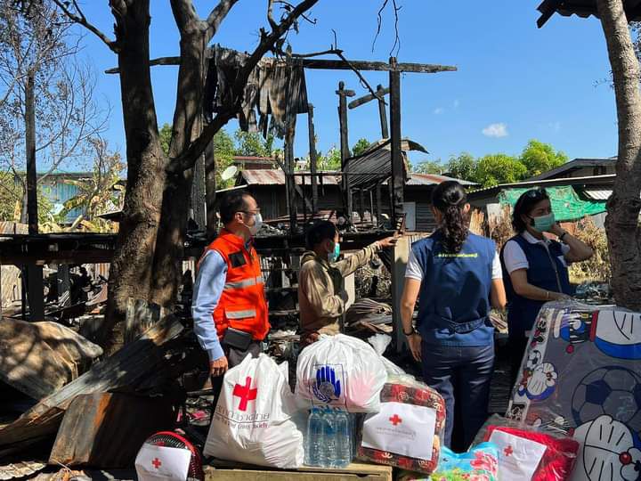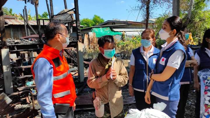 นางวัชราภรณ์ รุ่งสาคร นายกเหล่ากาชาดจังหวัดลพบุรี พร้อมด้วยนางฐิติรัตน แวงชิน รองนายกเหล่ากาชาดจังหวัดลพบุรี คณะกรรมการเหล่ากาชาดจังหวัดลพบุรี นายภราดล รุ่งโรจน์ธีระ หัวหน้าป้องกันและบรรเทาสาธารณภัยจังหวัดลพบุรี พัฒนาสังคมและความมั่นคงของมนุษย์จังหวัดลพบุรี ปลัดอำเภอเมืองลพบุรีและผู้นำชุมชน ลงพื้นที่เยี่ยมผู้ประสบเหตุ(อัคคีภัย) ในเขตพื้นที่อำเภอเมืองลพบุรี ซึ่งได้รับความเสียหายทั้งหลัง ไม่มีผู้บาดเจ็บและเสียชีวิต มีผู้อาศัยจำนวน 1 รายเพียงลำพัง นายสยาม ทวีสุข อาชีพรับจ้าง ณ บ้านเลขที่ 40 ซ.นเรศวร4 ต.ทะเลชุบศร อ.เมืองลพบุรี จ.ลพบุรีและประสานเทศบาลเมืองและหน่วยงานที่เกี่ยวข้อง พิจารณาเข้ารับการช่วยเหลือต่อไป