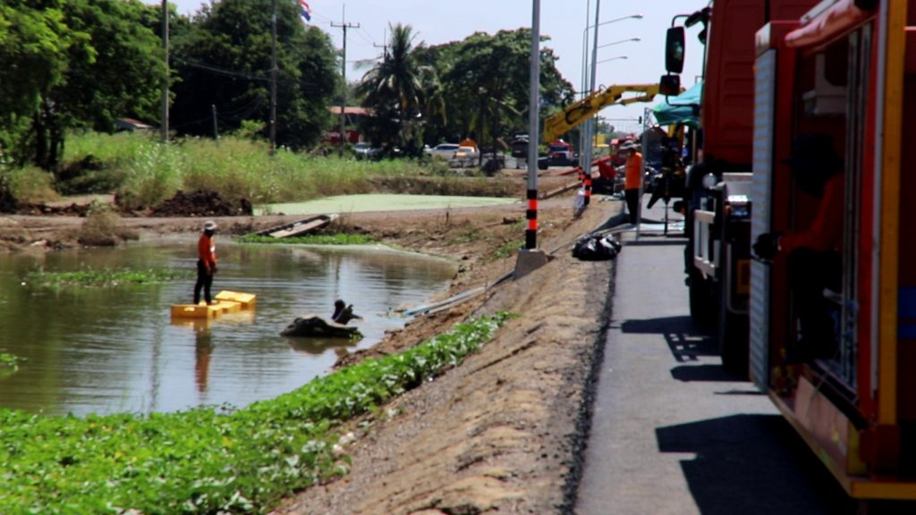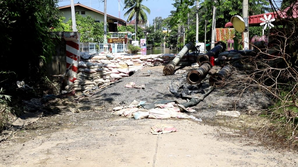 ระหว่างที่น้ำเข้าท่วมบ้านเรือนประชาชน เทศบาลตำบลอินทร์บุรี ได้น้ำถุงบรรจุทรายขนาดใหญ่ หรือบิ๊กแบ็ค ไปทำการอุดช่องผนังกันน้ำในบริเวณที่พัง จนน้ำหยุดไหล หลังจากนั้นจึงได้ประสานหน่วยงานต่างๆ นำเครื่องสูบน้ำมาทำการสูบน้ำออก ซึ่ง ณ ปัจจุบันระดับน้ำลดลงบ้านเรือนประชาชนจำนวนกว่า 750 หลัง เข้าสู่สภาวะปกติแล้ว ยังเหลืออีกประมาณ 100 หลังคาเรือน ที่ยังได้รับผลกระทบอยู่ ซึ่งคาดว่าจะใช้เวลาอีกประมาณ 2 ถึง 3 วัน ถึงจะสามารถกู้พื้นที่ หมู่ 3 และหมู่ 4 เข่าสู่ภาวะปกติได้ร้อยเปอร์เซ็นต์ ทั้งนี้ที่ล่าช้า ก็สืบเนื่องจากต้องมีการย้ายเครื่องสูบน้ำจำนวนหลายเครื่อง ไปจุดใหม่ ที่เป็นพื้นที่ลุ่มกว่า ที่สามารถสูบน้ำได้ดีกว่าด้วย