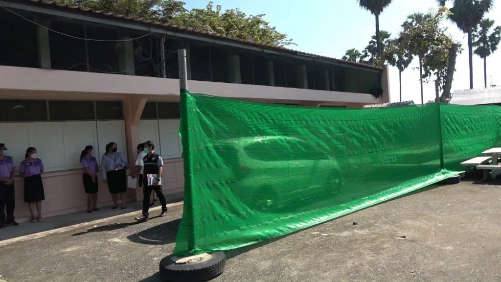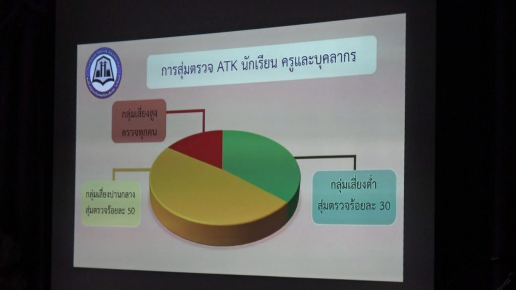 นายเรวัฒน์ พรหมสะโร ผู้อำนวยการโรงเรียนค่ายบางระจันวิทยาคม กล่าวว่า โรงเรียนจะแบ่งกลุ่มนักเรียนตามสี กลุ่มสีแดงนักเรียนที่ไม่ได้ฉีดวัคซีนต้องสุ่มตรวจ 100% สีเหลืองสุ่มตรวจ 50%สีเขียวสุ่มตรวจ 30% ได้จัดเตรียมสถานที่โฮมไอโซลูชั่น เตียงสนามและอุปกรณ์ทางการแพทย์ หากตรวจด้วยชุด Atk พบผลเป็นลบก็จะส่งนักเรียนไปตรวจซ้ำที่โรงพยาบาลบางระจัน ระหว่างรอผลก็ต้องกักตัวอยู่โฮมไอโซลูชั่น แยกนักศึกษาชายหญิง มีกล้องวงจรปิดรักษาความปลอดภัย จัดเวรยามดูแลนักเรียน ถ้าหากผลยืนยันเป็นลบ ก็จะส่งนักเรียนไปโรงพยาบาลหรือโรงพยาบาลสนามต่อไป ส่วนกลุ่มเสี่ยงสูงจะประสานศูนย์พักคอยตามภูมิลำเนาของนักเรียนต้องกักตัว 14 วัน ตามมาตรการสถานศึกษาปลอดภัย