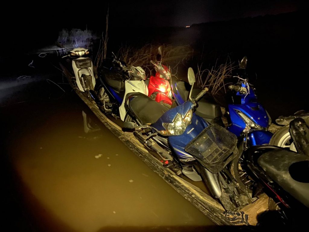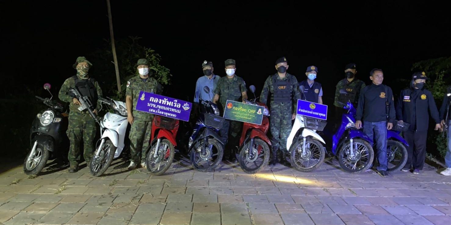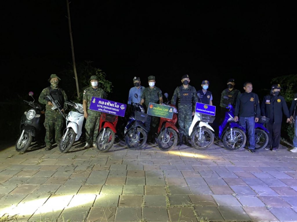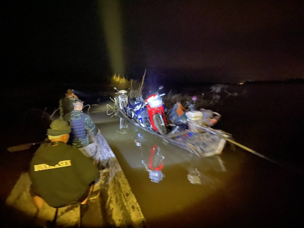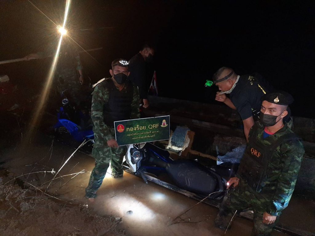 เมื่อวันที่ 27 ต.ค.64 เวลา 2000-2400 น. ที่บ้านดอนนางหงษ์ ม.7 ต.ดอนนางหงษ์ อ.ธาตุพนม จ.นครพนม ผู้สื่อข่าวรายงานจากกองร้อย.QRF ว่าได้รับแจ้งจาก ชปข.ที่ 6 ว่ากลุ่มกระบวนการนำรถข้ามแดนกำลังเตรียมรถ จยย.จำนวนหลายคันเพื่อจะนำรถข้ามไปยังฝั่งประเทศเพื่อนบ้านภายในคืนวันที่ 27 ต.ค.64 บริเวณพื้นที่ บ.ดอนนางหงษ์ ม.7 ต.ดอนนางหงษ์ อ.ธาตุพนม จ.นครพนม ทางด้าน พ.อ.สุคนธรัตน์ ชาวพงษ์ ผบ.กองบังคับการควบคุมที่ 1 กองกำลังสุรศักดิ์มนตรี จึงรีบสั่งการให้ ร.อ.นฤดล อุตม์สีขันธ์ ผู้บังคับกองร้อย QRF. กองร้อย.QRF จึงได้บูรณาการจัดกำลังพล 1 ชป. สนธิกำลังร่วมกับ สน.เรือธาตุพนม/ตชด.235/ฝ่ายปกครอง/กำนัน/ผู้ใหญ่บ้าน ร่วมบูรณาการจัดชุดปฏิบัติการซุ่มเฝ้าตรวจพื้นที่ดังกล่าว ครั้นเมื่อถึงเวลา 24.00 น.ในวันที่27 ต.ค.64 ชุด ชป.ได้ทำการตรวจการณ์เห็นเรือกีบหางยาวติดเครื่องยนต์ จำนวน 3 ลำ ห่างจากริมฝั่งแม่น้ำโขง ระยะทาง 50 – 70 เมตร ปิดไฟไหลตามแรงน้ำจากทิศเหนือมายังทิศใต้ ทาง จนท. จึงส่องไฟฉายเพื่อตรวจสอบหลังจากที่ส่องไฟฉายปรากฏว่าเป็นกลุ่มกระบวนการนำรถข้ามแดนโดยผิดกฎหมาย ภายในเรือมีรถ จยย.จำนวนหลายคันและผู้ต้อสงสัยภายในเรืออีกหลายคน(ไม่ทราบจำนวนที่แน่ชัด) เมื่อทางกลุ่มกระบวนการเห็นแสงไฟฉายของทาง จนท.ก็ได้ทำการสตาร์ทเครื่องยนต์เรือหางยาวหนีไป โดยลำที่ 1 และลำที่ 2 ขับเรือหนีไปทางหัวดอนนางหงษ์ และสามารถข้ามไปฝั่งประเทศเพื่อนบ้านได้สำเร็จ ส่วนลำที่ 3 เครื่องเรือสตาร์ทไม่ติดกลุ่มกระบวนการจึงได้พายเรือไปเทียบที่ดอนนางหงษ์บริเวณกึ่งกลางของดอนแล้วทิ้งเรือวิ่งหนีขึ้นไปยังดอนนางหงษ์จากนั้นทาง จนท.จึงได้ประสานการปฏิบัติไปยัง สน.เรือธาตุพนม จ.นครพนม เพื่อประสานลากเรือของกลุ่มกระบวนการจากดอนนางหงษ์กลับมา และผลการตรวจสอบภายในเรือ พบรถ จยย.จำนวน 8 คัน มีรายละเอียดดังนี้
