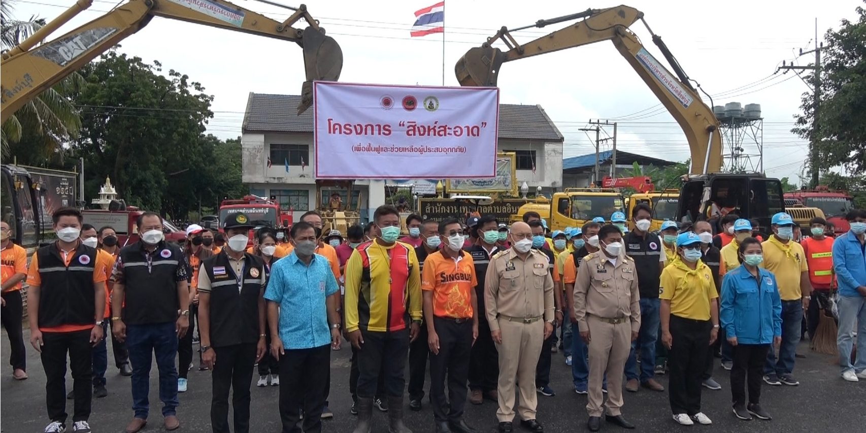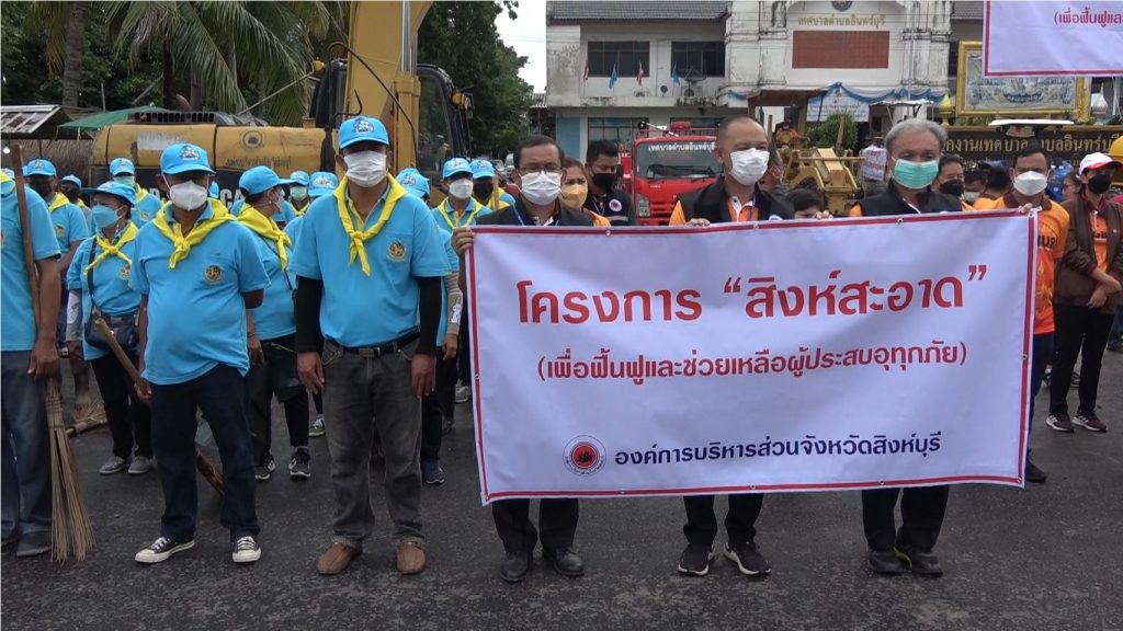 นายชัยชาญ สิทธิวิรัชธรรม ผู้ว่าราชการจังหวัดสิงห์บุรี พร้อมด้วยนายสมชาย ลีหล้าน้อย รองผู้ว่าราชการจังหวัดสิงห์บุรี ท้องถิ่นจังหวัดสิงห์บุรี นายอำเภออินทร์บุรี นายกองค์การบริหารส่วนจังหวัดสิงห์บุรี นายกเทศมนตรีตำบลอินทร์บุรี พร้อมด้วย เจ้าหน้าที่ อบจ.สิงห์บุรี และประชาชนจิตอาสาสิงห์บุรี ร่วมกิจกรรมตามโครงการจังหวัดสิงห์บุรี ร่วมกับองค์การบริหารส่วนจังหวัดสิงห์บุรี และเทศบาลตำบลอินทร์บุรี จัดโครงการ “สิงห์สะอาด”ขึ้น ณ เทศบาลตำบลอินทร์บุรี อำเภออินทร์บุรี จังหวัดสิงห์บุรี โดยมีวัตถุประสงค์ที่จะบูรณาการความร่วมมือของทุกภาคส่วน เพื่อร่วมช่วยเหลือฟื้นฟูบรรเทาความเดือดร้อนของพี่น้องประชาชนหลังน้ำลด มีการนำเครื่องมือ เครื่องจักร กำลังคนพร้อมอุปกรณ์ ช่วยเหลือเก็บกวาดทำความสะอาดสถานที่ราชการ โรงเรียน วัด ชุมชน ให้มีความสวยงามสะอาดตากลับคืนสู่สภาพเดิม เพื่อให้ประชาชนได้กลับมาใช้ชีวิตได้ตามปกติสุข