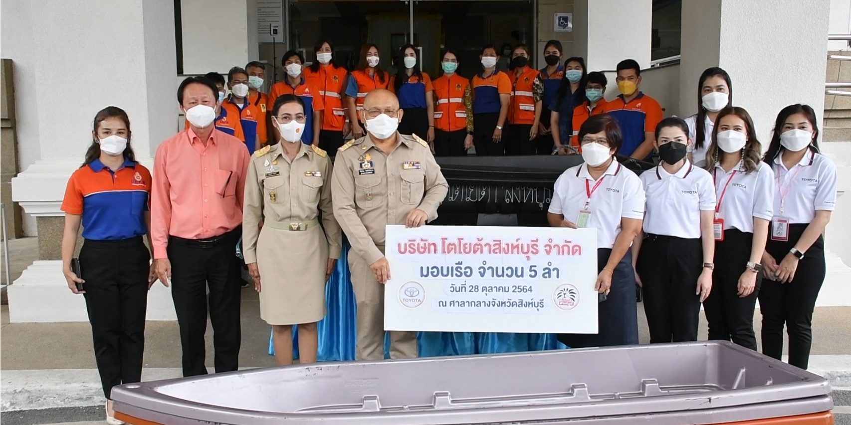 คุณสุปราณี จัตุรัส ผู้ช่วยกรรมการฝ่ายขายและการตลาด โตโยต้าสิงห์บุรี จำกัด พร้อมนายวิจิตร เลิศไพบูลย์วงศ์ ประธานสภาอุตสาหกรรมและพนักงานบริษัทโตโยต้าสิงห์บุรี เนื่องจากพี่น้องประชาชนที่มีบ้านพักอาศัยอยู่ในพื้นที่ลุ่มต่ำนอกคันกั้นน้ำที่ประสบน้ำท่วมบางครัวเรือนยังขาดเรือสัญจรไปมา ซึ่งสำนักงานป้องกันบรรเทาสาธารณภัยจะได้นำเรือเข้าไปช่วยเหลือประชาชนที่ประสบอุทกภัยจังหวัดสิงห์บุรีสะดวกมากยิ่งขึ้น