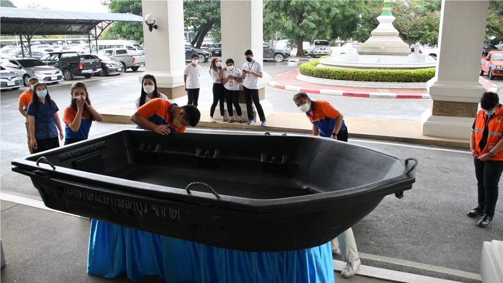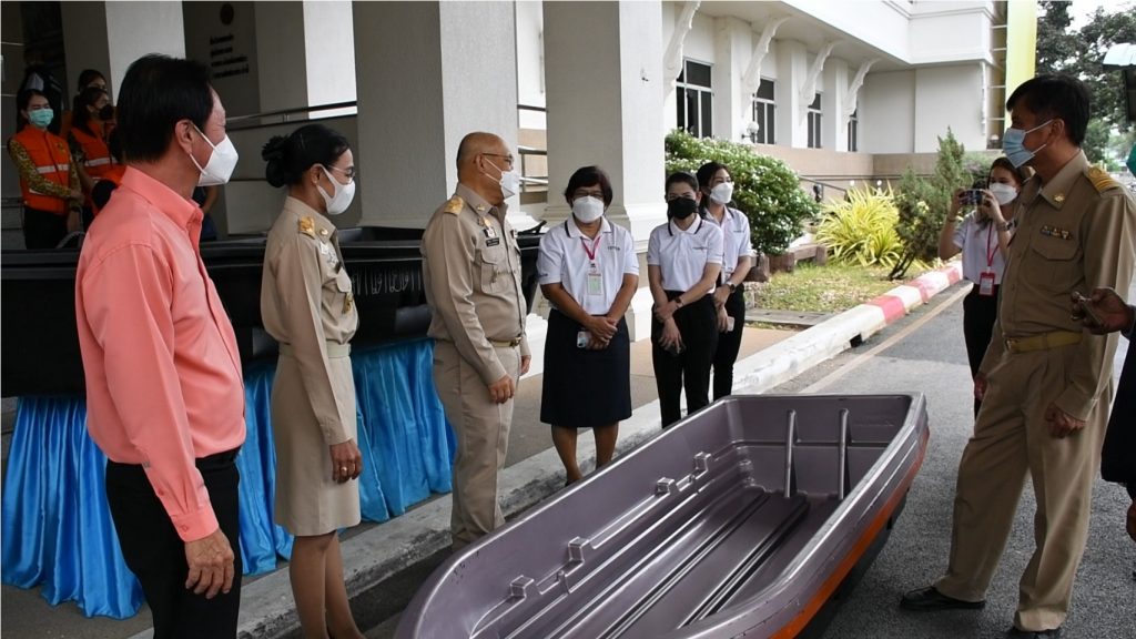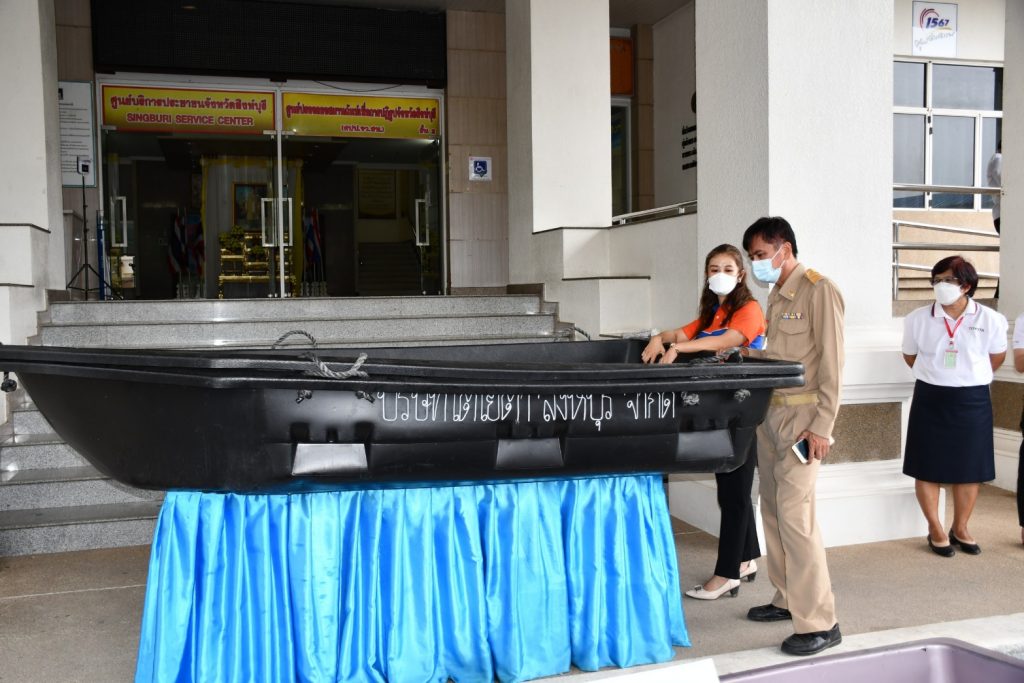 นายชัยชาญ สิทธิวิรัชธรรม ผู้ว่าราชการจังหวัดสิงห์บุรี พร้อมนางสาวนงเยาว์ เทพศิริ หัวหน้าสำนักงานป้องกันและบรรเทาสาธารณภัย รับมอบเรือพายจำนวน 5 ลำ มูลค่า 19,500 บาท จาก