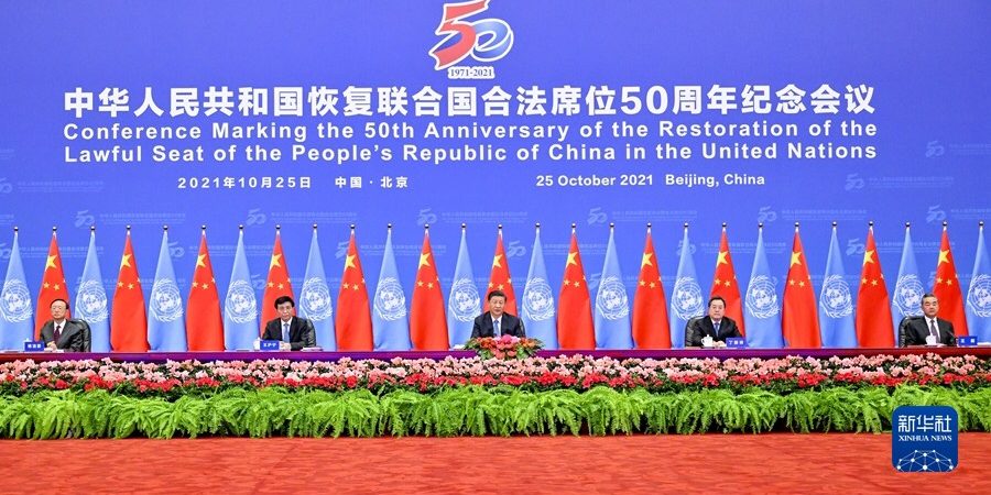 ประธานาธิบดีสี จิ้นผิง (国家主席习近平) เข้าร่วมการประชุมรำลึกครบรอบ ๕๐ ปีที่สาธารณรัฐประชาชนจีนฟื้นฟูฐานะอันชอบด้วยกฎหมายบนเวทีสหประชาชาติ (出席中华人民共和国恢复联合国合法席位50周年纪念会议) เมื่อวันที่ ๒๕ ต.ค.๖๔ กรุงปักกิ่งและกล่าวสุนทรพจน์ที่สำคัญ (ตอนที่ ๑) โดยมีประเด็นที่น่าสนใจดังนี้