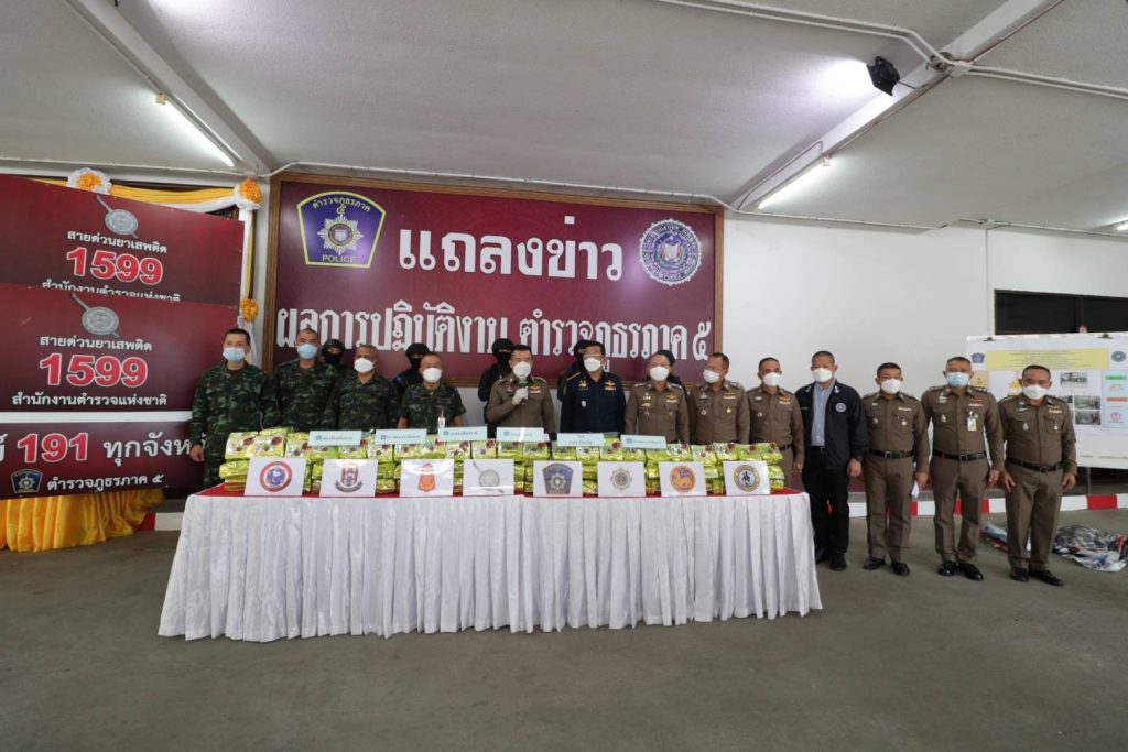 กองบัญชาการตำรวจภูธรภาค 5 ร่วมกับ ป.ป.ส.ภาค 5 ภายใต้การอำนวยการของ พล.ต.ท.ปิยะ ต๊ะวิชัย ผบช.ภ.5 ร่วมกับ นายไกรเลิศ ดาวเรือง ผอ.ป.ป.ส.ภาค 5, พล.ต.ต.กฤตธาพล ยี่สาคร รอง ผบช.ภ.5, พล.ต.ต.พฤทธิพงษ์ ประยูรศิริ รอง ผบช.ภ.5 พร้อมด้วยเจ้าหน้าที่ทหาร และฝ่ายปกครอง ร่วมแถลงผลการจับกุมยาเสพติดรายสำคัญ ผู้ต้องหาจำนวน 1 ราย พร้อมของกลางยาไอซ์ น้ำหนักประมาณ 235 กก. ในวันที่ 29 ตุลาคม 2564 เวลา 10.00 น. ณ ลานแถลงข่าว อาคารกองบังคับการสืบสวนสอบสวนตำรวจภูธรภาค 5