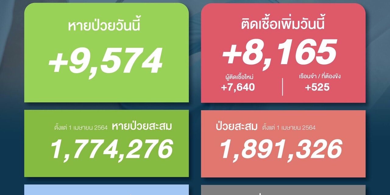 หายป่วยสะสม 1,774,276 ราย (ตั้งแต่ 1 เมษายน)