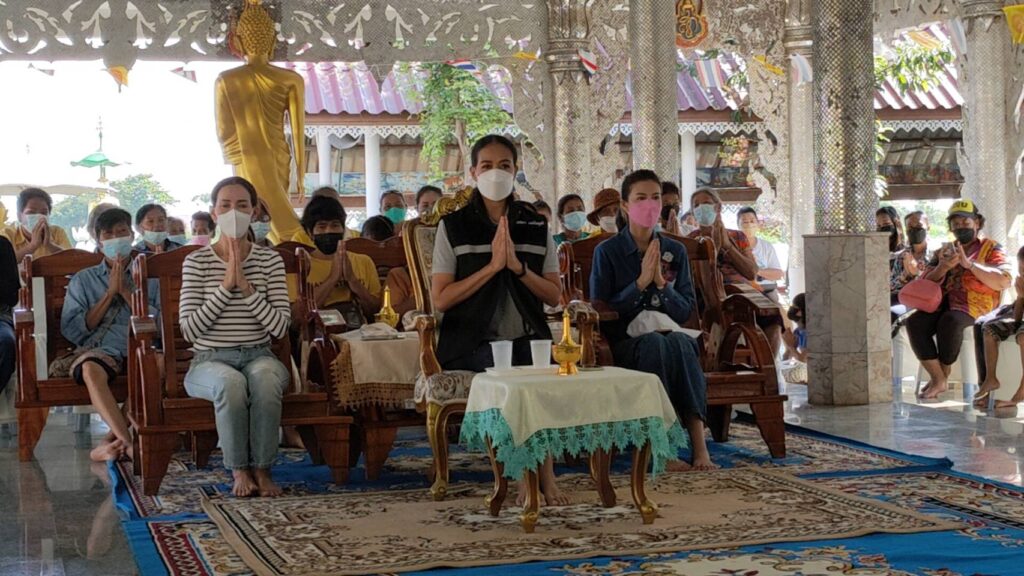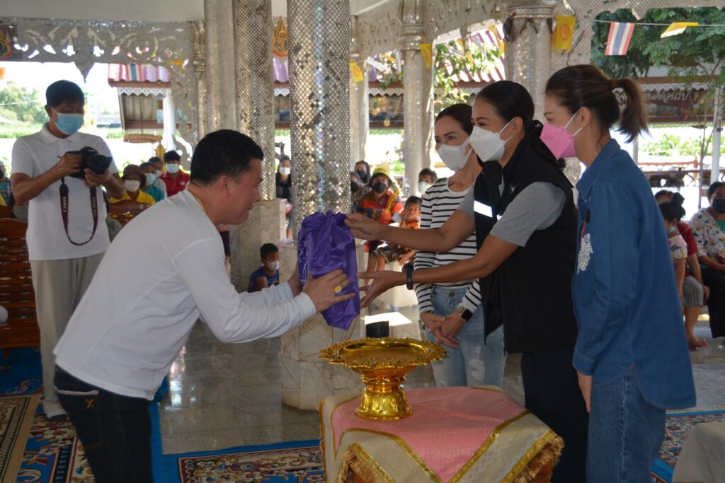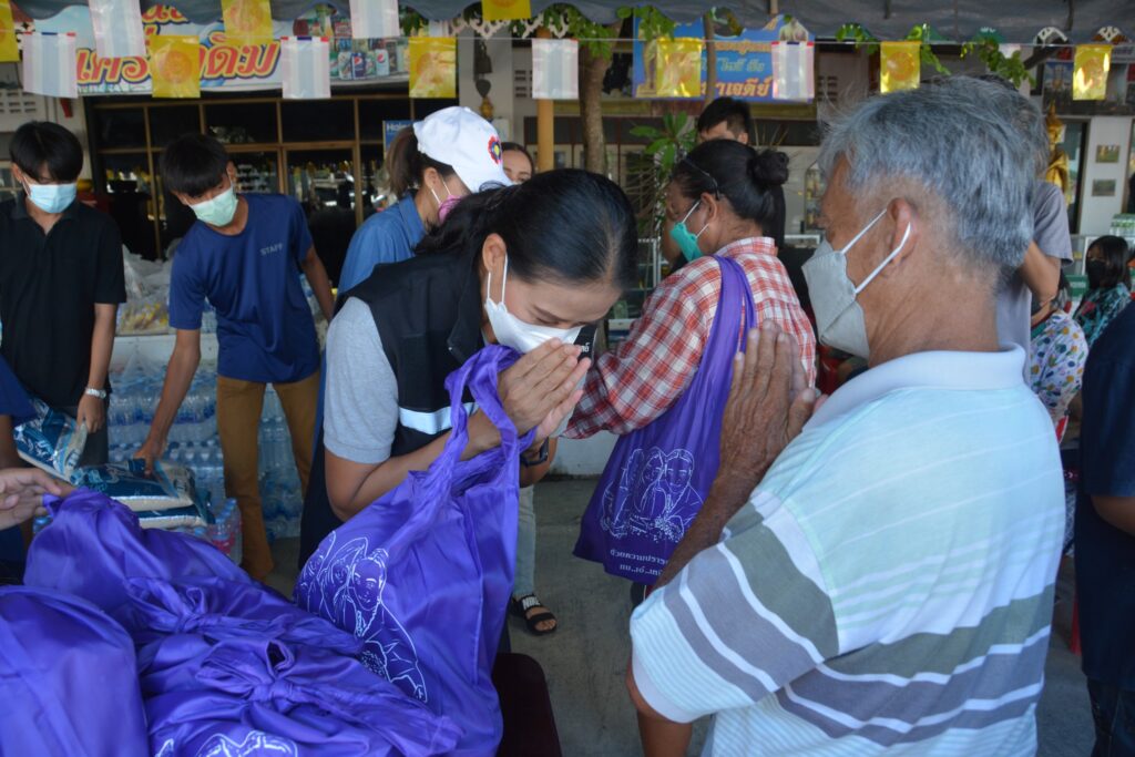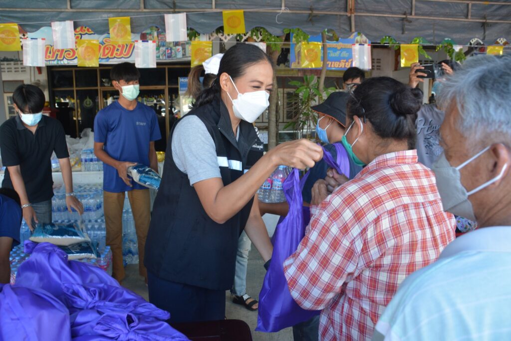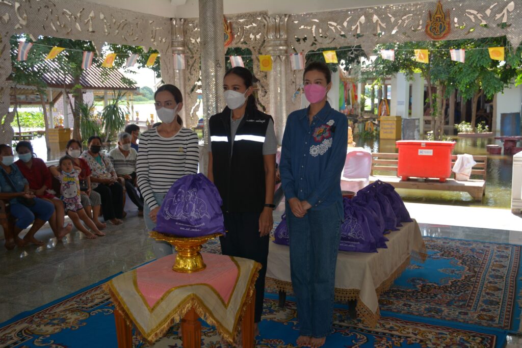 “ครั้งที่เป็นครั้งที่ 5 แล้วค่ะ คือกบได้รับการติดต่อจากท่านเจ้าอาวาสวัดท่าเจดีย์ และพี่น้องชาวบางเลนว่า ยังคงมีน้ำท่วมอยู่ และชาวบ้านยังต้องการถุงยังชีพเพิ่มเติม กบกับกัลยาณมิตรจึงรวบรวมของที่มี และนำมามอบให้กับชาวบ้านที่วัดท่าเจดีย์ ซึ่งทางวัดก็จะประสานกับชาวบ้านที่อยู่ใน ต.บางเลน อ.สองพี่น้อง ให้มารับของที่วัด ไม่ต้องลงเรือไปแจก เพราะที่วัดไม่มีเรือหรืออุปกรณ์ที่จะลงพื้นที่ไปแจกตามบ้าน วันนี้กบก็ได้ พี่ดี้ ปัทมา กับ น้องปู มัณฑนา มาช่วยมอบถุงยังชีพ ซึ่งกบก็จะนำถุงยังชีพมาแจกในวันอาทิตย์ที่ 14 พฤศจิกายน อีกครั้งที่วัดท่าเจดีย์ ซึ่งก็จะมีพิธีทอดกฐินไปในคราวเดียวกันด้วยค่ะ”