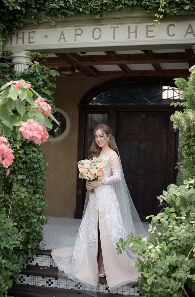 “ไม่ใช่ว่าที่บ่าวสาวที่เหนื่อยนะคะ แม่ก็เหนื่อยเหมือนกัน เพราะช่วยสองหมอทำทุกอย่าง เสิร์ฟน้ำให้ด้วย น้องพลอยเกือบเป็นลม เพราะไม่ยอมทานอะไรเลย กลัวไม่สวยมั้ง เพราะตื่นตั้งแต่เช้าจนจรดเย็น คนเป็นแม่ก็ต้องดูแล แม่ก็ต้องขอบคุณทุกๆ ความร่วมมือ ทีมตากล้องภาพนิ่ง สถานที่ ที่ให้ความร่วมมืออย่างดี เพราะเรายังอยู่ในสถานการณ์โควิด เราต้องปลอดภัยไว้ก่อน @theapothecaryvenue พอเห็นภาพแล้วก็หายเหนื่อยเป็นปลิดทิ้งเลย เพราะสวยงามถูกใจคุณแม่มากค่ะ”