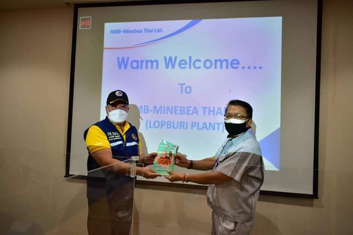 ณ บริษัท มินีแบมิตซูมิ (ประเทศไทย) อำเภอเมืองลพบุรี เพื่อติดตามสถานการณ์แรงงานต่างด้าวและติดตามความปลอดภัย สิ่งแวดล้อม และระบบบำบัดการควบคุมมลพิษ