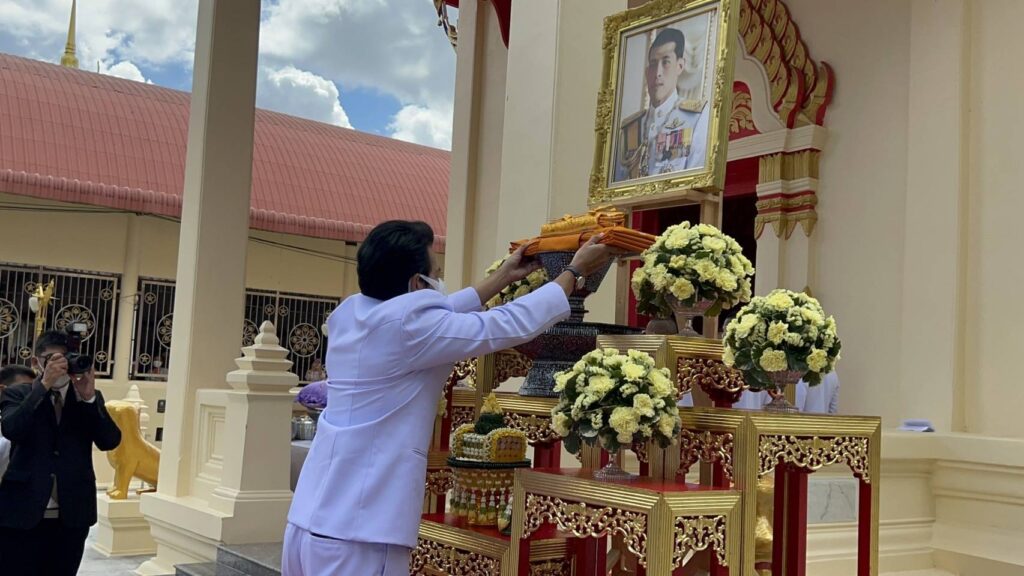 ตามที่ขอพระราชทาน เพื่อน้อมนำมาถวายพระสงฆ์จำพรรษากาลถ้วนไตรมาส ณ วัดมหาชัย พระอารามหลวง อ.เมือง จ.มหาสารคาม เพื่อเป็นการทำนุบำรุงพระพุทธศาสนา โดยมีนายบิณฑ์ บรรลือฤทธิ์ ผู้จัดการฝ่ายกิจกรรมพิเศษมูลนิธิร่วมกตัญญู เป็นประธานในพิธี และพระเทพสิทธาจารย์ เจ้าคณะจังหวัดมหาสารคาม เป็นประธานฝ่ายสงฆ์ พร้อมด้วย นายเกียรติศักดิ์ ตรงศิริ ผู้ว่าราชการจังหวัดมหาสารคาม นางพรศรี ตรงศิริ นายกเหล่ากาชาดจังหวัดมหาสารคาม หัวหน้าส่วนราชการ ข้าราชการ เอกชน เจ้าหน้าที่อาสาสมัครมูลนิธิฯ ตลอดจนประชาชนเข้าร่วมพิธี