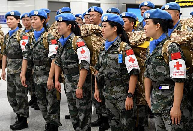 ๓. เมื่อเข้าสู่ยุคใหม่ กองทัพจีนได้ปฏิบัติตามคำมั่นสัญญาที่ประกาศโดยประธานาธิบดีสี จิ้นผิง อย่างเต็มที่ ในการเข้าร่วมการประชุมสุดยอดการรักษาสันติภาพของสหประชาชาติ จัดตั้งกองกำลังรักษาสันติภาพ ๘,๐๐๐ นาย และเพิ่มการสนับสนุนและการมีส่วนร่วมในการปฏิบัติการรักษาสันติภาพของสหประชาชาติ ปัจจุบันมีเจ้าหน้าที่รักษาสันติภาพและทหารจีนกว่า ๒,๒๐๐ นายประจำการใน ๗ พื้นที่ปฏิบัติภารกิจ ได้แก่ ซูดานใต้ คองโก (กินชาซา) มาลี เลบานอน Abyei (阿卜耶伊 เป็นพื้นที่ 10,546 ตาราง กม.บนพรมแดนระหว่างซูดานใต้และซูดานซึ่งได้รับการยอมรับ สถานะการปกครองพิเศษ) ซาฮาราตะวันตก และองค์กรกำกับดูแลการสู้รบในตะวันออกกลาง และในสำนักงานใหญ่ของสหประชาชาติ ภารกิจรักษาสันติภาพ ตั้งแต่ต้นปีนี้ กองทัพจีนได้จัดให้มีการฝึกซ้อมเพื่อการรักษาสันติภาพสากล “Common Destiny-2021” (“共同命运-2021”) คำสั่งภารกิจรักษาสันติภาพ “Common Mission-2021” (“共同使命-2021”) ซึ่งแสดงให้เห็นถึงความมุ่งมั่นอย่างแน่วแน่ของจีนที่จะคงไว้ซึ่งระบบระหว่างประเทศโดยมีองค์การสหประชาชาติเป็นแกนหลัก
