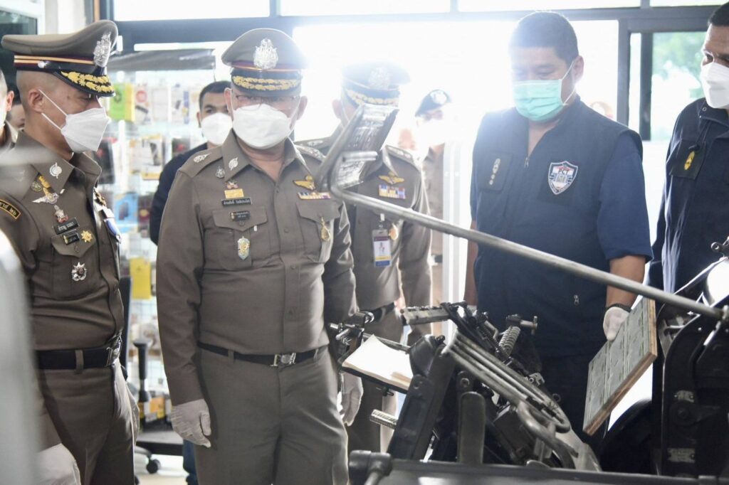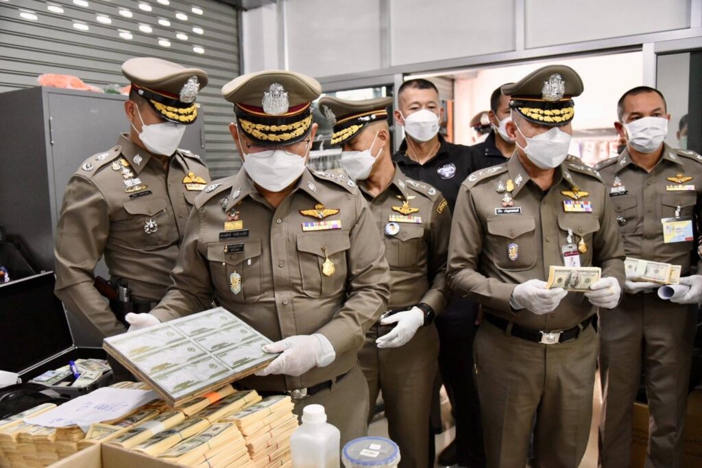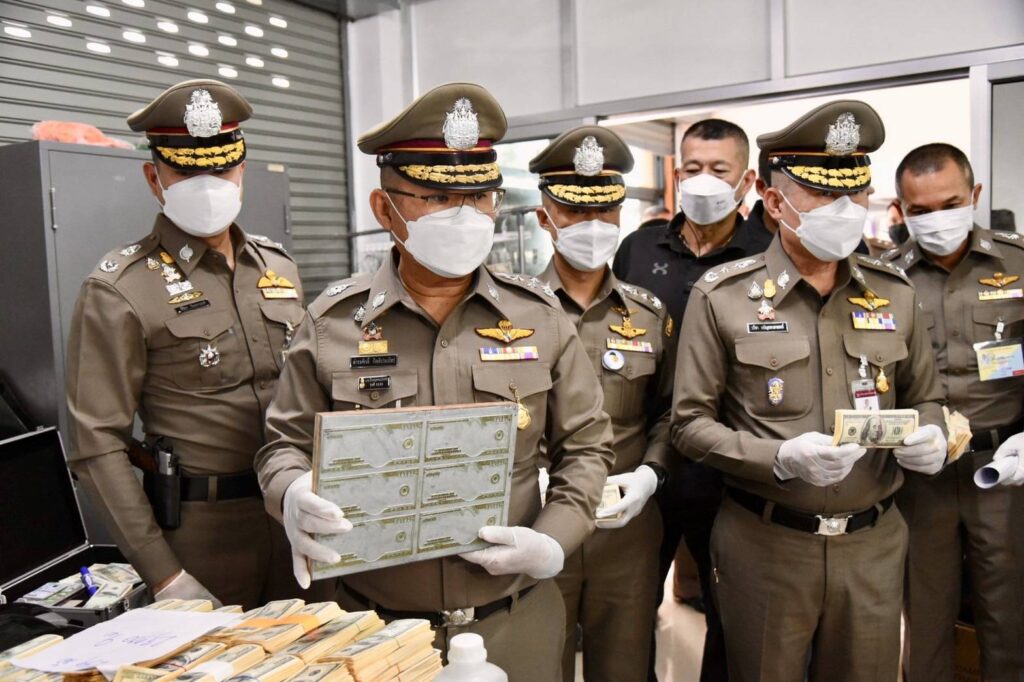 เมื่อวันที่ 3 พ.ย.64 เวลา 14.00 น.: พล.ต.อ.ดำรงศักดิ์ กิตติประภัสร์ รอง ผบ.ตร. ในฐานะผู้อำนวยการศูนย์ปราบปรามอาชญากรรมทางเทคโนโลยีสารสนเทศ สำนักงานตำรวจแห่งชาติ (ศปอส.ตร.) หรือ PCT พร้อมด้วย พล.ต.ท.ปรีชา เจริญสหายานนท์ ผู้ช่วย ผบ.ตร.,พล.ต.ท.สำราญ นวลมา ผบช.น.,พล.ต.ต.นิธิธร จินตกานนท์ รอง ผบช.น.,พล.ต.ต.พลฑิต ชัยยศ ผบก.น.3,พล.ต.ต.นภันต์วุฒิ เลี่ยมสงวน ผบก.สส.ภ.8 และ พ.ต.อ.ศักยะ แสงวรรณ ผกก.สน.ลำผักชี ร่วมกันแถลงข่าวผลการจับกุมผู้ต้องหาขบวนการลักลอบผลิตธนบัตรดอลล่าห์สหรัฐอเมริกาปลอม ยึดแบงค์ดอลล่าห์ปลอมกว่า 36,000 ใบ รับผลิตมาแล้ว 50,000 ใบ คิดเป็นมูลค่า 5,000,000 ดอลล่าห์หรือคิดเป็นเงินไทย กว่า 150,000,000 บาท