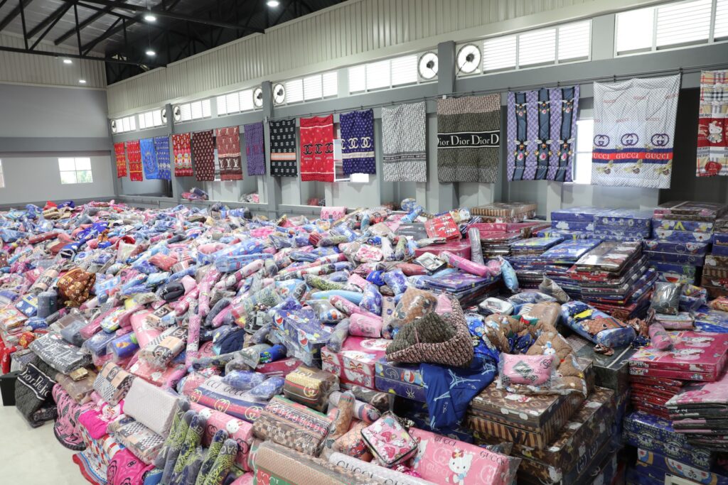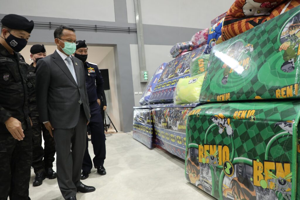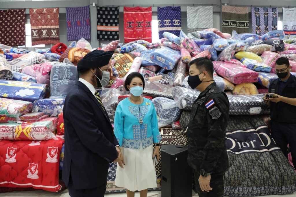โดยนายสมศักดิ์ฯ ได้เดินตรวจสินค้าละเมิดลิขสิทธิ์ที่จับกุมมาได้ จำนวน 40,000 ชิ้น ส่วนใหญ่เป็นชุดเครื่องนอน หมอน ผ้าห่ม และตุ๊กตา โดยทาง ตัวแทนบริษัท ฟูจิโกะ เอฟ ฟูจิโอะ โปร จำกัด เจ้าของเครื่องหมายการค้าโดราเอมอน ตัวแทนผู้นำเข้าสินค้าแบรนด์เนม เข้ามอบกระเช้าดอกไม้แสดงความขอบคุณ ที่สามารถจับกุมสินค้าละเมิดลิขสิทธิ์ได้
