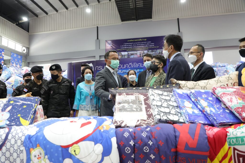 เมื่อวันที่ 3 พฤศจิกายน 2564 เวลา 10.30 น. ที่สถาบันการสอบสวนคดีพิเศษ กรมสอบสวนคดีพิเศษ นายสมศักดิ์ เทพสุทิน รัฐมนตรีว่าการกระทรวงยุติธรรม พร้อมด้วย น.ส.ณัฐธ์ภัสส์ ยงใจยุทธ ผู้ช่วย รมว.ยุติธรรม ลงพื้นที่ตรวจผลการบุกตรวจค้นโกดังเก็บและสถานที่จำหน่ายสินค้าปลอมเครื่องหมายการค้าในเขตพื้นที่ จ.ระยอง และจ.ปทุมธานี พบสินค้าประเภทที่นอน ผ้าห่ม และชุดผ้าปูที่นอนที่ปลอมเครื่องหมายการค้าของบุคคลอื่นที่จดทะเบียนแล้วเป็นจำนวนมาก โดยมีนายไตรยฤทธิ์ เตมหิวงศ์ อธิบดีกรมสอบสวนคดีพิเศษ(ดีเอสไอ) คณะผู้บริหาร พร้อมด้วยเจ้าหน้าที่ดีเอสไอตั้งแถวต้อนรับ