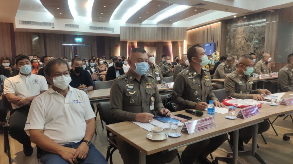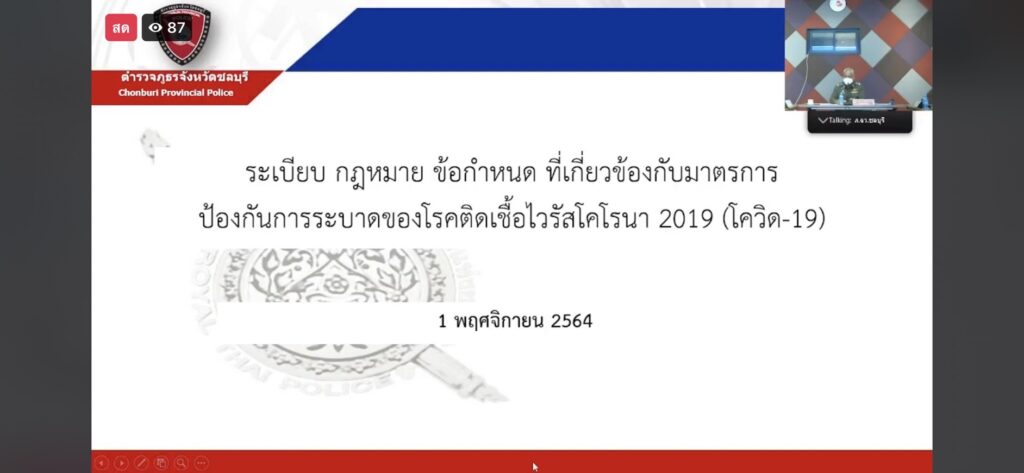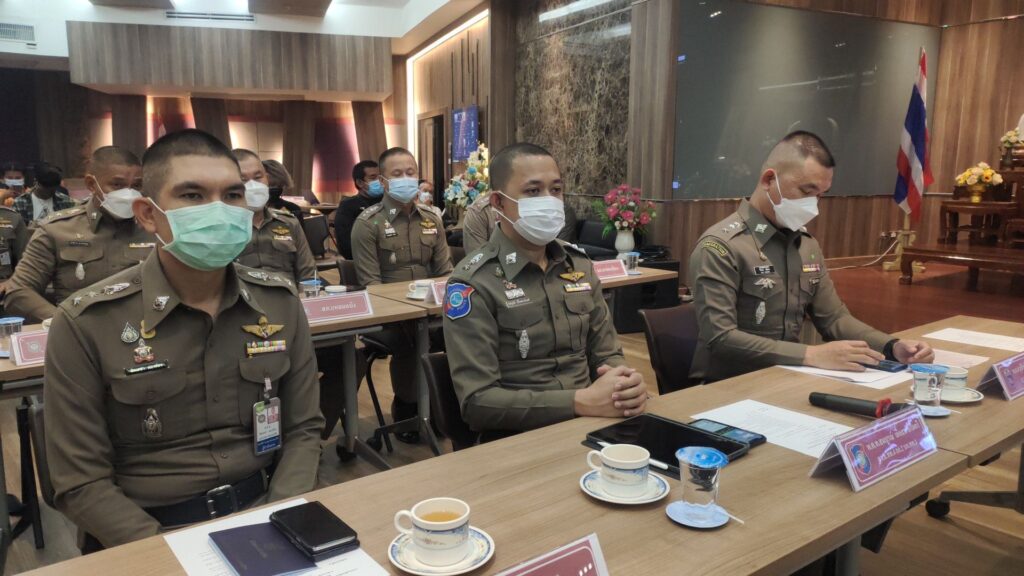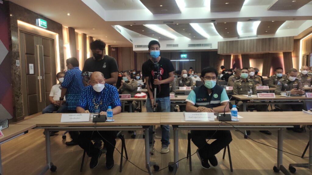 วันที่ 4 พ.ย.64 เวลา 14.00 น.ณ ห้องประชุมทัพพระยา 401 ศาลาว่าการเมืองพัทยา จังหวัดชลบุรี : พล.ต.ต.อรรถสิทธิ์ กิจจาหาญ ผบก.ภ.จ.ชลบุรี ประธานการประชุม พร้อมด้วย นายบรรลือ กุลละวณิชย์ รองนายกเมืองพัทยา,นายชยพล รัตนวิสุทธิกุล ป้องกันจังหวัดชลบุรี,นายวิทักษ์ วิทักษบุตร หัวหน้ากลุ่มงานควบคุมโรคติดต่อ,พ.ท.นริศ สามารถ รอง หน.กองยุทธการ มทบ.14,พ.อ.ทรงพล บัวทอง หน.ฝ่ายการข่าว กอ.รมน.,นายขจรเดช อภิชาติตรากุล ผอ.ททท.สำนักงานพัทยา,นางอำไพ ศักดานุกูลจิต สไลวินสกี้ รรท.ท่องเที่ยวและกีฬาจังหวัดชลบุรี,นายพิสูจน์ แซ่คู นายกสมาคมโรงแรมไทยภาคตะวันออก,นายทิว ปัญญาธิวงศ์ ตัวแทนสมาคมสปาแอนด์เวลเน็ต ภาคตะวันออก,ทพญ.ณัฎฐ์ศรันย์ นายกสมาคมการท่องเที่ยวและบริการศรีราชาเกาะสีชัง,นายธเนศ ศุภรสสหัสรังสี รรก.ประธานสภาอุตสาหกรรมท่องเที่ยวจังหวัดชลบุรี,นายนาวิน ค้าขาย ประธานชมรมร้านอาหารเมืองพัทยา,นายธนกร วนะภูติ ตัวแทนชมรมคาเฟ่แอนบีสโทรพัทยา,เจ้าหน้าที่ตำรวจ สังกัด ตม.จ.ชลบุรี,เจ้าหน้าที่ตำรวจสังกัด กก.2 บก.ทท.1,ผกก.หน.สภ.ฯ ในสังกัด ภ.จ.ชลบุรี และผู้ประกอบการสถานบริการในพื้นที่จังหวัดชลบุรี (ในห้องประชุมจำนวน 71 ร้าน,ผ่านทางระบบ ZOOM จำนวน 108 ร้าน และผ่านทาง FACEBOOK LIVE จำนวน 87 ร้าน)