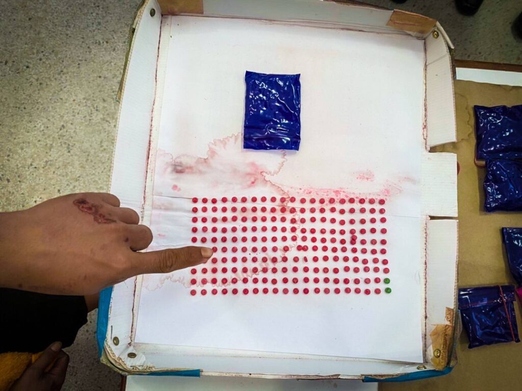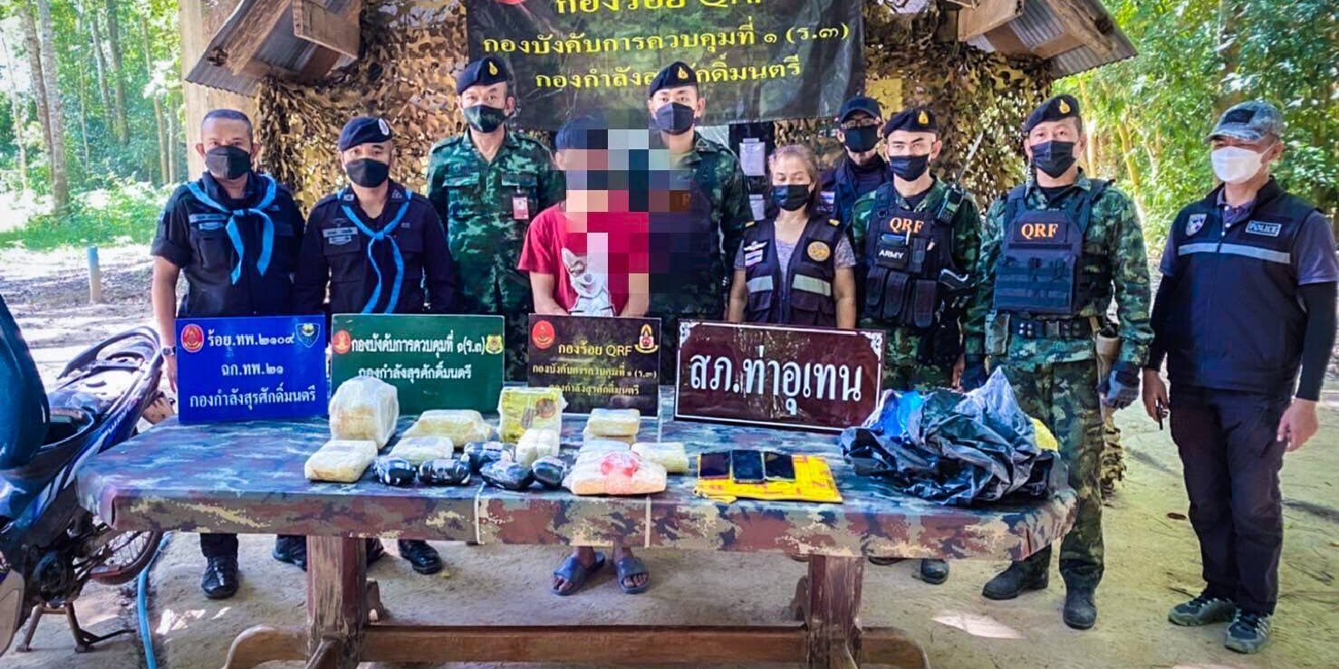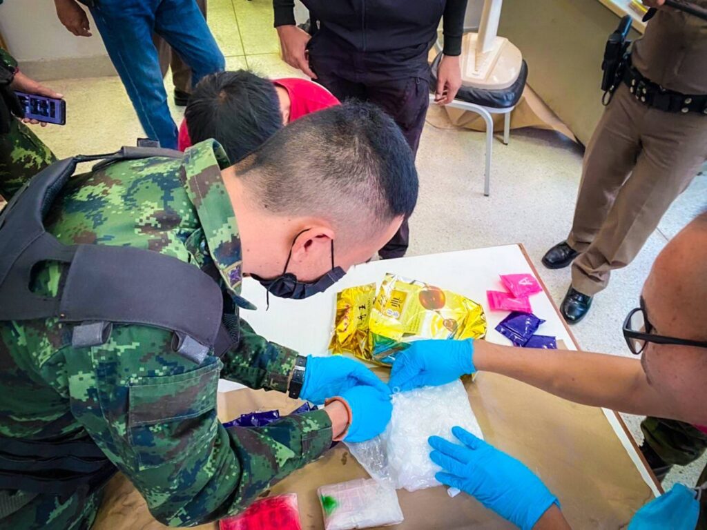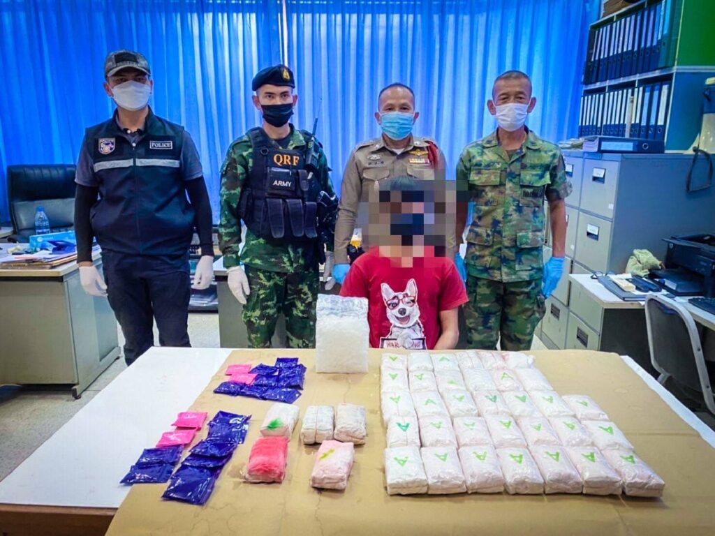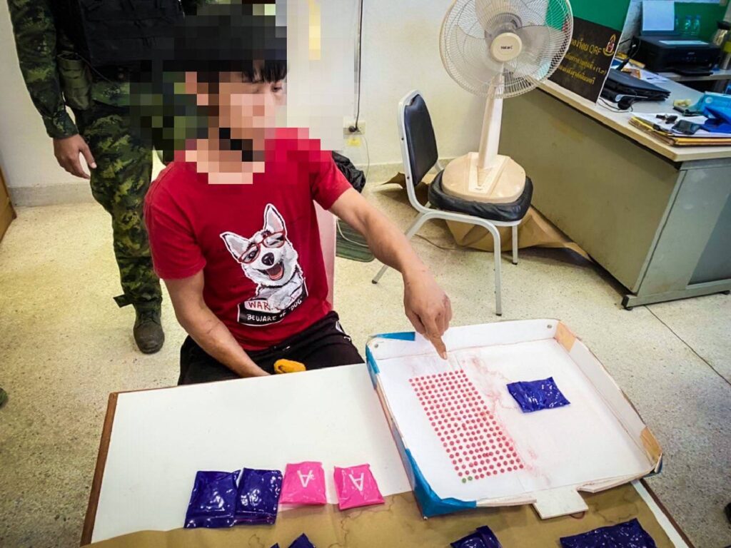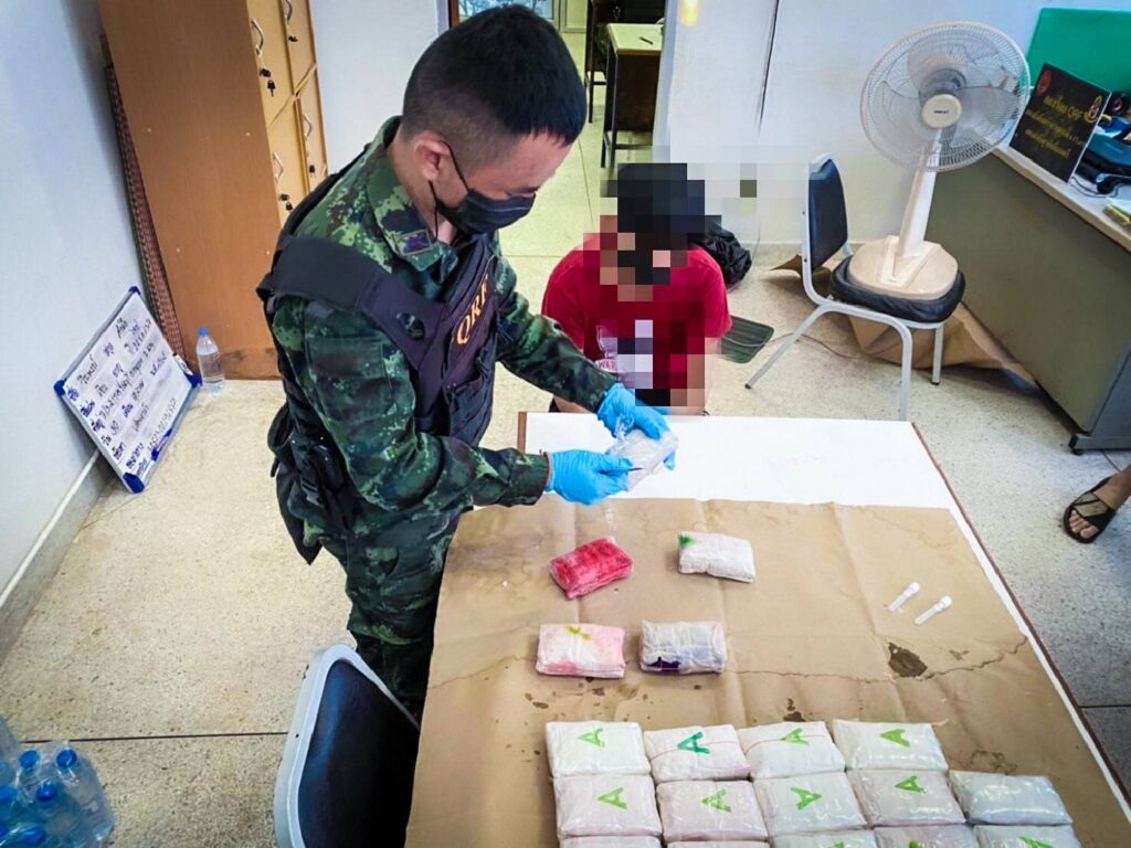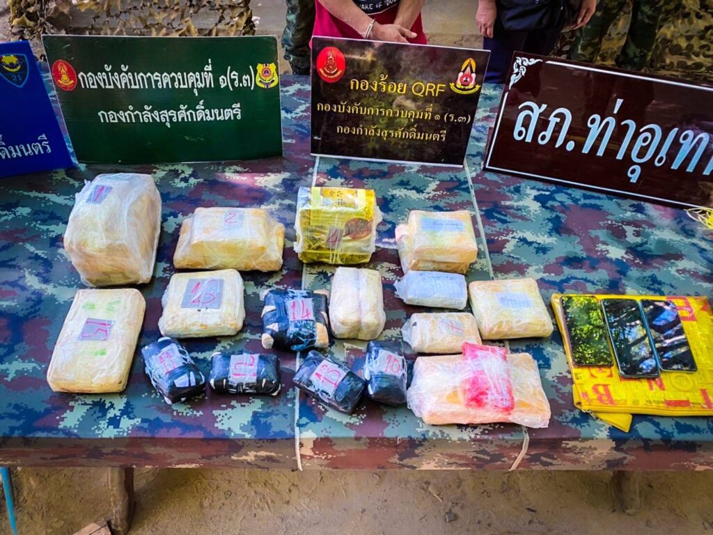 __ เมื่อวันที่ 4 พ.ย.64 เวลา 20.00 น. ที่วัดป่าน้อยลวงมอง ต.หนองเทา อ.ท่าอุเทน จ.นครพนม ผู้สื่อข่าวรายงานจากกองร้อย.QRF ในพื้นที่ จ.นครพนมรับแจ้งจากสายว่ากลุ่มขบวนการค้ายาเสพติดจะลักลอบขนยาเสพติดเข้าประเทศไทยบริเวณชายแดนริมแม่น้ำโขง ทางด้าน พ.อ.สุคนธรัตน์ ชาวพงษ์ ผบ.กองบังคับการควบคุมที่ 1 กองกำลังสุรศักดิ์มนตรี จึงรีบสั่งการให้ ร.อ.นฤดล อุตม์สีขันธ์ ผู้บังคับกองร้อย QRF. กองร้อย.QRF จึงได้จัดกำลังพลชุดปฏิบัติการ นำทีมโดย ร.ต.เกตุแก้ว พระแสง ผบ.มว.QRF.ที่2 พร้อมด้วยกำลังพล มว.QRF. ที่ 2 ร้อย.QRF ลาดตระเวนดักซุ่มบริเวณบริเวณพื้นที่ บ.น้อยลวงมอง ต.หนองเทา อ.ท่าอุเทน เพื่อป้องกันกลุ่มขบวนการลักลอบขนย้ายยาเสพติดและสิ่งผิดกฏหมายในพื้นที่ ครั้นเมื่อ 050730 พ.ย.64 ชุดลาดตระเวนดักซุ่มได้ตรวจพบเรือต้องสงสัยแล่นมาจากกลางแม่น้ำโขง บริเวณทางทิศเหนือ เมื่อเรือจอดเทียบริมฝั่งแม่น้ำโขง บริเวณท่าหน้าวัดท่าสว่าง บ.น้อยลวงมอง ต.หนองเทา เจ้าหน้าที่จึงได้ดักซุ่มคอยจนกระทั่งชายคนกล่าวเดินขึ้นบันไดมาประมาณครึ่งทาง จึงได้ร่วมแสดงตัวและขอตรวจสอบ แต่ปรากฏว่าเมื่อชายคนดังกล่าวพบเห็นเจ้าหน้าที่แสดงท่าทีมีพิรุธ ตกใจและรีบวิ่งกลับลงไปที่แม่น้ำโขง พร้อมกับโยนกระสอบปุ๋ยสีเหลืองที่ถืออยู่ทิ้งลงไปในแม่น้ำโขง และได้ลื่นล้มตกลงที่ริมน้ำตรงจุดที่โยนกระสอบสีเหลือง เจ้าหน้าที่ชุดลาดตระเวนดักซุ่มจึงได้ติดตามลงไปควบคุมตัวชายดังกล่าวไว้ สอบถามทราบชื่อ นาย ปิยะพงษ์ บุญประคม (กอล์ฟ) เจ้าหน้าที่จึงได้ทำการตรวจค้น พบกระสอบสีเหลืองภายในพบถุงพลาสติกสีดำและสีฟ้าอยู่ภายในกระสอบ เมื่อเปิดถุงออกดู พบก้อนวัตถุจำนวนหลายก้อนซุกซ่อนอยู่ภายใน เมื่อสอบถามนายปิยะพงษ์ฯ ให้การรับว่าก้อนวัตถุที่ตรวจพบเป็นยาเสพติด เจ้าหน้าที่จึงตรวจยึดก้อนวัตถุดังกล่าวไว้เพื่อตรวจสอบ จากนั้นได้นำตัวผู้ต้องหาพร้อมของกลางมายังฐานปฏิบัติการ มว.QRF.ที่ 2 ร้อย.QRF ณ ที่ตั้งวัดป่าน้อยลวงมอง เพื่อสืบสวนเบื้องต้น จากนั้นได้นำตัวนายปิยะพงษ์ฯ พร้อมของกลาง ไปยัง สน.ท่าอุเทน เพื่อตรวจสอบอย่างละเอียด พบสิ่งผิดกฎหมายและผู้ต้องหา คือ นายปิยะพงษ์ บุญประคม อายุ 28 ปี ภูมิลำเนาบ้านเลขที่ 25/2 ม.8 ต.หนองเทา อ.ท่าอุเทน จ.นครพนม โดยมีหลักฐานพร้อมของกลาง เป็นยาเสพติดให้โทษประเภทที่ 1 (ยาบ้า) เม็ดสีส้ม มีตัวภาษาอังกฤษ WY จำนวน 68,112 เม็ด ยาเสพติดให้โทษประเภทที่ 1 (ยาบ้า) เม็ดสีเขียว มีตัวภาษาอังกฤษ Y1 จำนวน 688 เม็ด นับรวมกันได้ 68,800 เม็ด ยาเสพติดให้โทษประเภทที่ 1 (ยาบ้าลักษณะเปียกชื้น) จำนวน 56 ถุง ชั่งน้ำหนักได้ประมาณ 1,230 ก
