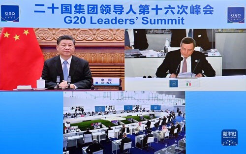 ประธานาธิบดีสี จิ้นผิง (国家主席习近平) ได้เข้าร่วมการประชุมสุดยอดผู้นำกลุ่ม G20 ครั้งที่ ๑๖ (二十国集团领导人第十六次峰会) ผ่านระบบทางไกล จากกรุงปักกิ่งต่อไป เมื่อช่วงค่ำของวันที่ ๓๑ ต.ค.๖๔ โดยเน้นมุมมองในประเด็นต่างๆ เช่น การเปลี่ยนแปลงสภาพภูมิอากาศ พลังงาน และการพัฒนาที่ยั่งยืน ซึ่งมีประเด็นที่น่าสนใจดังนี้
