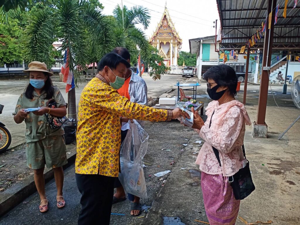 ในโอกาสนี้ได้นำ หน้ากากอนามัยมอบให้ประชาชนที่มาร่วมทำบุญ เพื่อใช้ในการป้องกันโรคโควิด 19 ตามมาตรการของ กระทรวงสาธารณสุข