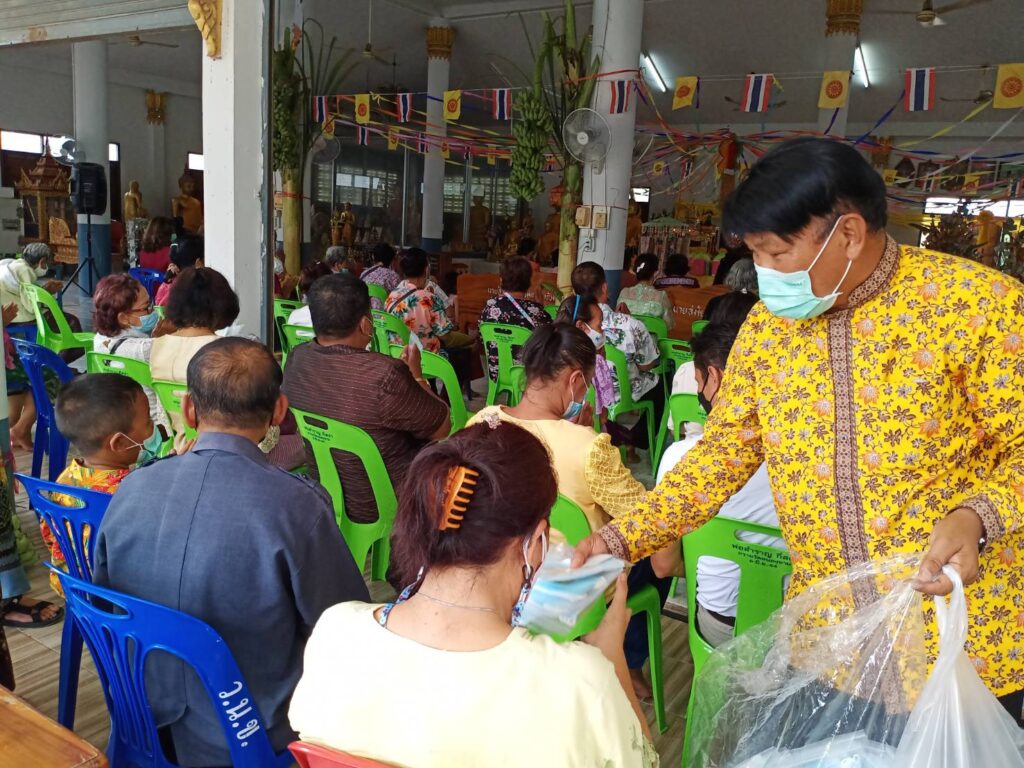 ในโอกาสนี้ได้นำ หน้ากากอนามัยมอบให้ประชาชนที่มาร่วมทำบุญ เพื่อใช้ในการป้องกันโรคโควิด 19 ตามมาตรการของ กระทรวงสาธารณสุข