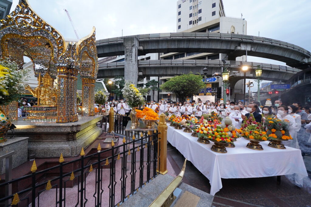 “รำบวงสรวงสักการะท่านท้าวมหาพรหม” ซึ่งเป็นการจับมือร่วมกันของ สมาคมผู้ประกอบวิสาหกิจในย่านราชประสงค์ (RSTA) สำนักงานส่งเสริมการจัดประชุมและนิทรรศการ (องค์การมหาชน) (TCEB) และสมาคมการค้าส่งเสริมการจัดมหกรรมและเทศกาลนานาชาติไทย (TIEFA) ในการยกระดับการท่องเที่ยวมิติใหม่ตามแคมเปญ Land of Wisdom, ย่านภูมิปัญญาอัจฉริยะ