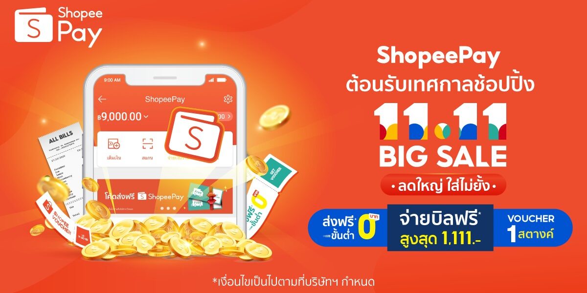 ห้ามพลาดกับโปรโมชันและความคุ้มค่า เมื่อใช้จ่ายผ่าน ShopeePay บนแอปพลิเคชัน Shopee ในช่วงมหกรรมช้อปปิ้ง ‘Shopee 11.11 Big Sale’ ดูรายละเอียดเพิ่มเติมได้ที่ https://www.facebook.com/ShopeePayTH