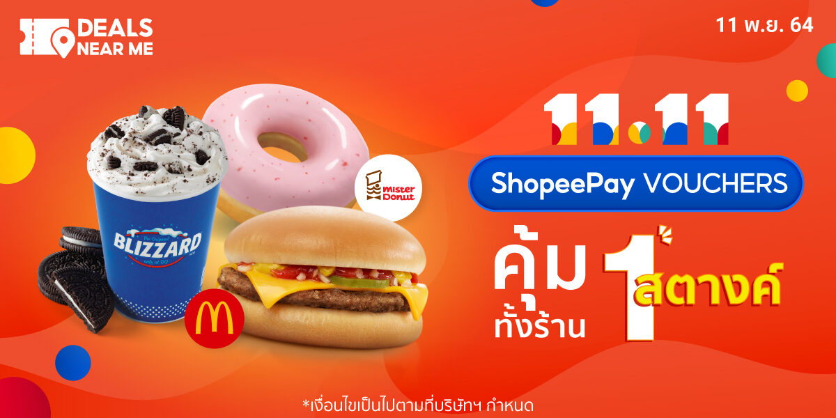 ห้ามพลาดความคุ้มค่าของ ShopeePay Vouchers 1 สตางค์ ที่ให้ผู้ใช้งานสแกนจ่ายผ่าน ShopeePay ที่หน้าร้านค้าแบบอินเทรนด์ ปลอดภัยไร้สัมผัส แถมสะดวกสบาย ในช่วงมหกรรมช้อปปิ้ง ‘Shopee 11.11 Big Sale’ ดูรายละเอียดเพิ่มเติมได้ที่ https://www.facebook.com/ShopeePayTH
