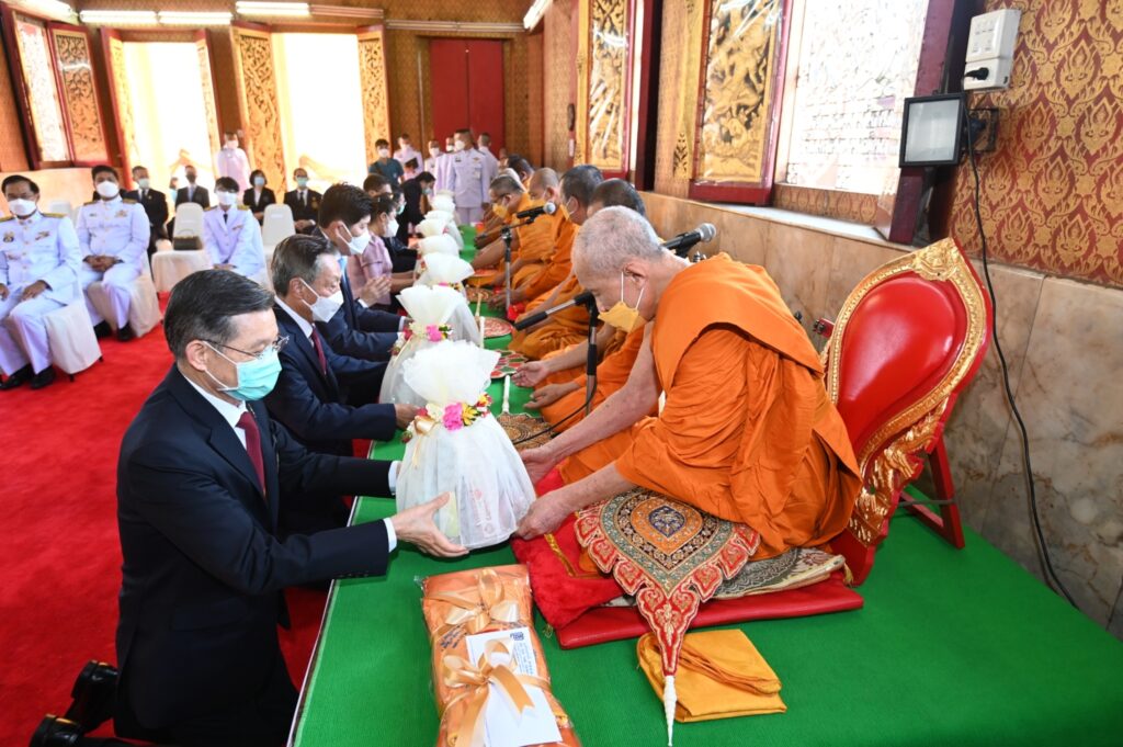 ป่อเต็กตึ๊ง เป็นประธานในพิธี พร้อมด้วยนายวิชิต ชินวงศ์วรกุล กรรมการ นายอรัญ เอี่ยมสุรีย์ กรรมการ นายชาญกิจ วิทยาวรากรณ์ กรรมการ และคณะผู้บริหารจากโรงพยาบาลหัวเฉียว มหาวิทยาลัยหัวเฉียวเฉลิมพระเกียรติ และคลินิกการประกอบโรคศิลปะ สาขาการแพทย์แผนจีนหัวเฉียว เป็นประธานร่วมในพิธี โดยมี นายวุฒิชัย ยามโคกสูง นายอำเภอบางคนที พร้อมด้วย นางศรีสมร ศรีวิชา ผู้อำนวยการกลุ่มยุทธศาสตร์และเฝ้าระวังทางวัฒนธรรม สำนักงานวัฒนธรรมจังหวัดสมุทรสงคราม และนางสาวนวพร สิงหกุล ผู้อำนวยการกลุ่มอำนวยการและกิจการพระพุทธศาสนา สำนักงานพระพุทธศาสนาจังหวัดสมุทรสงคราม ร่วมพิธี ทั้งนี้ ได้มีผู้มีจิตกุศลร่วมถวายจตุปัจจัย บำรุงและบูรณะพระอาราม ทำบุญกฐินพระราชทาน ประจำปี 2564 เป็นจำนวนเงินทั้งสิ้น 1,763,964 บาท (หนึ่งล้านเจ็ดแสนหกหมื่นสามพันเก้าร้อยหกสิบสี่บาทถ้วน) เมื่อวันที่ 6 พฤศจิกายน 64 ที่ผ่านมา