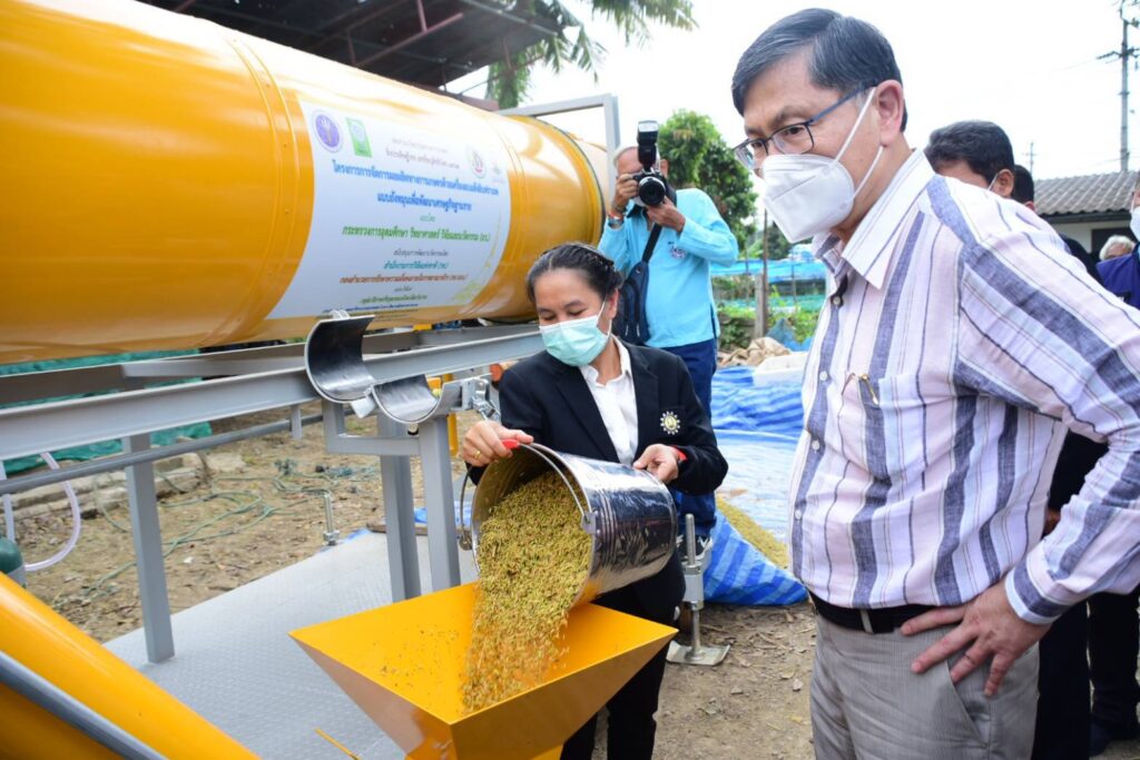 ศาสตราจารย์พิเศษ ดร.เอนก เหล่าธรรมทัศน์ รัฐมนตรีว่าการกระทรวงการอุดมศึกษา วิทยาศาสตร์ วิจัยและนวัตกรรม (อว.) มอบนวัตกรรมเครื่องอบแห้งอินฟราเรดแบบถังหมุน ให้กับวิสาหกิจชุมชนกลุ่มผู้ผลิตข้าวอินทรีย์ครบวงจร และวิสาหกิจชุมชนข้าวทิพย์ช้าง จังหวัดลำปาง เพื่อไว้ใช้งาน และส่งเสริมความเข้มแข็งเศรษฐกิจและเพิ่มประสิทธิภาพการผลิตทางการเกษตร โดยมี นายอนวัช สัตตยบุศย์ ปลัดจังหวัดลำปาง ในฐานะเลขาธิการ (กอ.รมน.) จังหวัด กล่าวต้อนรับ นายธีรวัฒน์ บุญสม ผู้อำนวยการกองส่งเสริมและสนับสนุนการวิจัยและนวัตกรรม สำนักงานการวิจัยแห่งชาติ (วช.) (ได้รับมอบหมายจากผู้อำนวยการสำนักงานการวิจัยแห่งชาติ) ให้กล่าวรายงาน ณ วิสาหกิจชุมชนกลุ่มผู้ผลิตข้าวอินทรีย์ครบวงจร หมู่ 4 ตำบลพิชัย อำเภอเมือง จังหวัดลำปาง