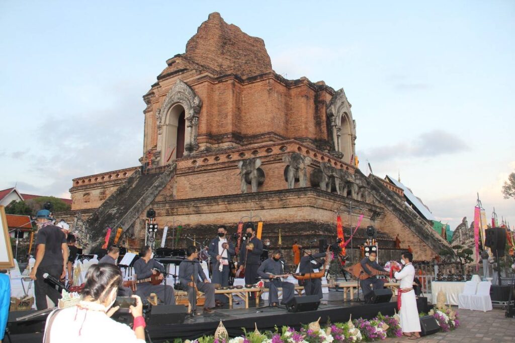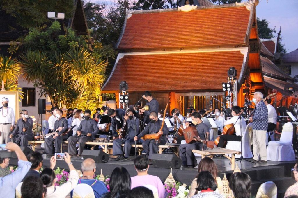 ช่วงค่ำวันที่ 12 พ.ย.64 : ศาสตราจารย์พิเศษ ดร.เอนก เหล่าธรรมทัศน์ รัฐมนตรีกระทรวงการอุดมศึกษา วิทยาศาสตร์ วิจัยและนวัตกรรม ชมการแสดงดนตรี “ไหว้สาบูรพาจารย์” ถ่ายทอดเสียงเพลงพื้นบ้าน ผ่านการแสดงของวงดนตรีซิมโฟนีออร์เคสตร้า ณ วัดเจดีย์หลวง จังหวัดเชียงใหม่ โดยมี ดร.วิภารัตน์ ดีอ่อง ผู้อำนวยการสำนักงานการวิจัยแห่งชาติ (วช.) หัวหน้าส่วนราชการ และประชาชนที่สนใจเข้าชมการแสดง