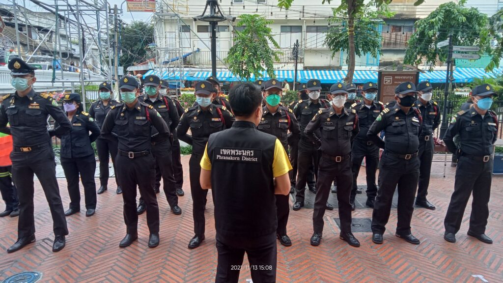 ให้ จนท.เทศกิจ ตรวจความเป็นระเบียบเรียบร้อย จัดระเบียบผู้ค้า การตั้งวาง การทำการค้า ในแนวเส้นที่ สนง.เขตพระนคร ได้กำหนด กวดขันความสะอาด รวมถึง ประชาสัมพันธ์ขอความร่วมมือแก่พี่น้องประชาชนพ่อค้าแม่ค้า ที่เดินทางมาในงาน ให้ปฏิบัติตามมาตรการ การป้องกันควบคุมโรค Covid-19 ตามประกาศของรัฐบาลเพื่อเป็นการลดการเเพร่เชื้อลดความเสี่ยงของการแพร่ระบาดของเชื้อไวรัส Covid-19