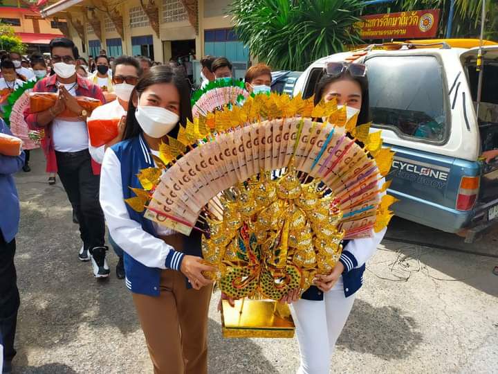 ทำมือ พากันจัดทำเป็นต้นกฐินเค้กทำด้วยเงินมาสมทบกองกฐิน มีอัฐบริขาร และเครื่องกฐินจำนวนมาก ท่ามกลางความร่มรื่นของต้นไม้หลากหลายพันธุ์ภายในบริเวณวัดฯ