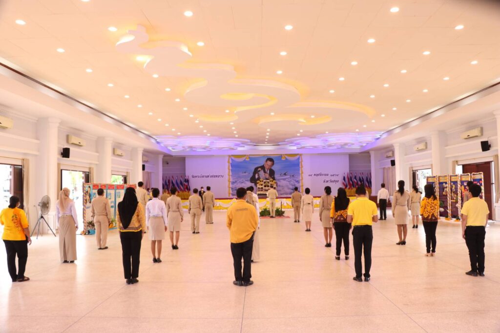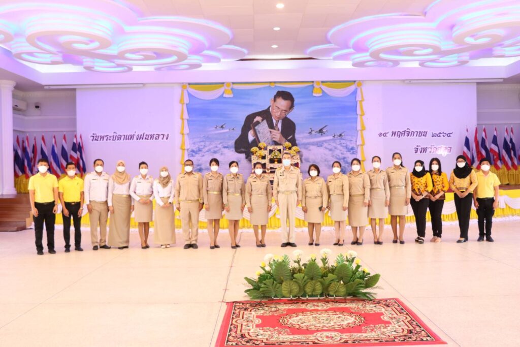ที่อาคารเฉลิมพระเกียรติ 80 พรรษา ศาลากลางจังหวัดสตูล นายทศพล สวัสดิสุข ปลัดจังหวัดสตูล เป็นประธานในพิธีวางพานพุ่มดอกไม้สดถวายราชสักการะและกล่าวรำลึกในพระมหากรุณาธิคุณ เบื้องหน้าพระบรมฉายาลักษณ์ พระบาทสมเด็จพระบรมชนกาธิเบศร มหาภูมิพลอดุลยเดชมหาราช บรมนาถบพิตร เนื่องในวันพระบิดาแห่งฝนหลวง ประจำปี 2564 โดยมีนางปิยรัตน์ ลัภกิตโร เกษตรและสหกรณ์จังหวัดสตูล พร้อมด้วยข้าราชการ และหน่วยงานส่วนราชการในสังกัดกระทรวงเกษตรและสหกรณ์ เข้าร่วมพิธี ภายใต้มาตรการป้องกันและควบคุมการแพร่ระบาดโควิด-19