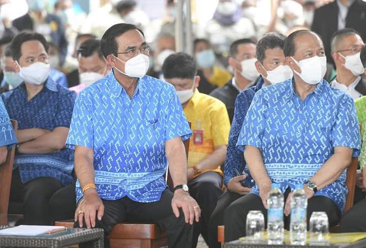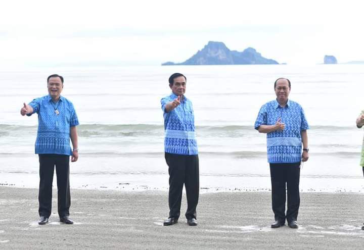 วันนี้ (15 พ.ย. 64) ที่อุทยานแห่งชาติหาดนพรัตน์ธารา – หมู่เกาะพีพี อำเภอเมืองกระบี่ จังหวัดกระบี่ พลเอก ประยุทธ์ จันทร์โอชา นายกรัฐมนตรี สวมใส่เสื้อบาติกสีฟ้าลายขอเจ้าฟ้าสิริวัณณวรีฯ ซึ่งเป็นผลิตภัณฑ์พื้นเมือง OTOP ของจังหวัดกระบี่ ในการ ตรวจเยี่ยม มอบนโยบาย และพบปะหัวหน้าส่วนราชการ กำนัน ผู้ใหญ่บ้าน ผู้บริหารองค์กรปกครองส่วนท้องถิ่น และผู้ประกอบการ ภาคเอกชน โดยมี นายอนุทิน ชาญวีรกูร รองนายกรัฐมนตรี พลเอก อนุพงษ์ เผ่าจินดา รัฐมนตรีว่าการกระทรวงมหาดไทย นายทรงศักดิ์ ทองศรี รัฐมนตรีช่วยว่าการกระทรวงมหาดไทย คณะรัฐมนตรี นายสุทธิพงษ์ จุลเจริญ ปลัดกระทรวงมหาดไทย นายชัยวัฒน์ ชื่นโกสุม รองปลัดกระทรวงมหาดไทย หัวหน้ากลุ่มภารกิจด้านพัฒนาชุมชนและส่งเสริมการปกครองท้องถิ่น นายสมคิด จันทมฤก อธิบดีกรมการพัฒนาชุมชน นายพุฒิพงศ์ ศิริมาตย์ ผู้ว่าราชการจังหวัดกระบี่ ร่วมรับฟัง
