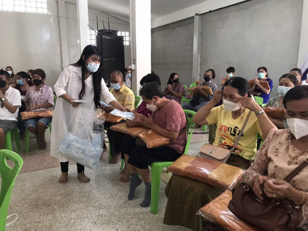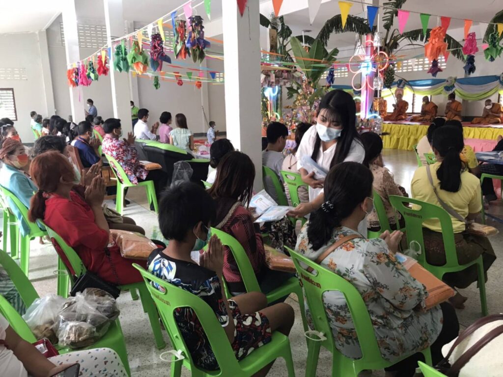 ในโอกาสนี้ได้นำ หน้ากากอนามัยมอบให้ประชาชนที่มาร่วมทำบุญ เพื่อใช้ในการป้องกันโรคโควิด 19 ตามมาตรการของ กระทรวงสาธารณสุข