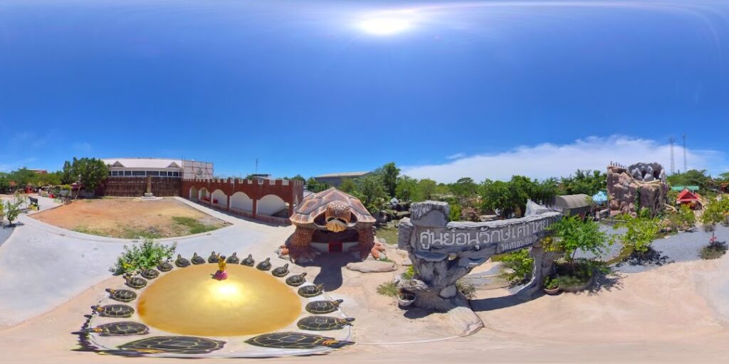 ๔.น้ำตกจำลองพร้อมรูปปั้นพญาเต่ายักษ์ โดยที่ใต้ฐานเต่ายักษ์และบริเวณโดยรอบนั้นเป็นศูนย์อนุรักษ์เต่าไทย