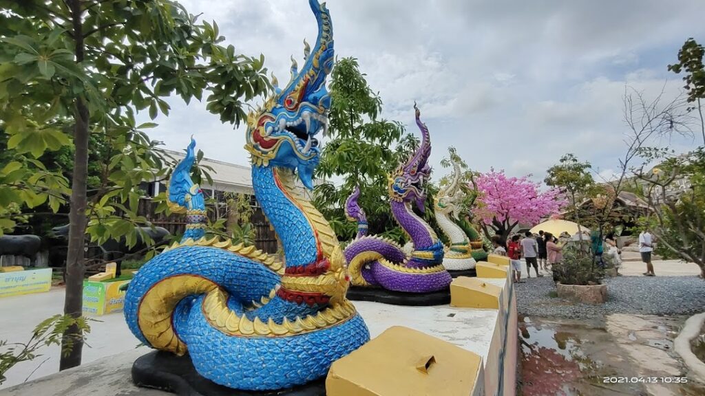 ๓.วังพญานาคราช เป็นการจำลองลักษณะคล้ายถ้ำมี ๒ ชั้น บริเวณด้านหน้ามีรูปปั้นพญานาคขนาดใหญ่ ๒ ตัว เดินเข้าไปภายในจะพบบ่อเลี้ยงขนาดใหญ่เลี้ยงปลาคราฟเป็นจำนวนมาก เมื่อขึ้นไปยังบริเวณชั้น ๒ จะสามารถมองเห็นทัศนียภาพของวัดหัวกระบือและบริเวณโดยรอบ นอกจากนี้ยังมี นครบาดาลตำนานพญานาค ภายในสถานที่มีรูปปั้นจำลอง อาทิ พญานาคาและพญานาคี ทั้งในรูปลักษณ์นาคและรูปลักษณ์ในภาคมนุษย์