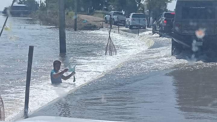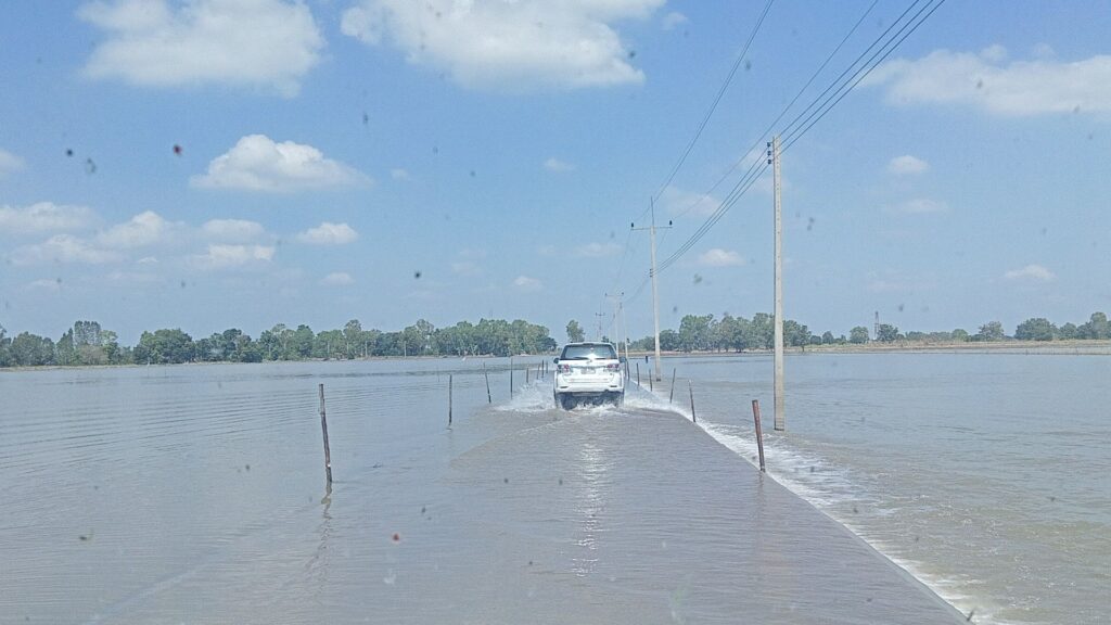 อ.กงไกรลาศ จ.สุโขทัย ที่ติดเกาะจำนวน 25 ครัวเรือน โดยมีนายวัชระ พร้าโมต กำนันต.ไกรนอก และนางกฐิน แสงมี ผู้ใหญ่บ้านพร้อมชาวบ้านมาให้การต้อนรับ โอกาสนี้นางกฐิน ได้เล่าให้ฟังว่าที่นี่เป็นแหล่งรับน้ำบางระกำโมเดล น้ำจะท่วมหลังจากทำนาเสร็จเป็นเวลา 3 เดือนทุกปี รัฐไม่มีค่าชดเชยใดๆ สภาพน้ำท่วมถนนทำให้ชาวบ้านต้องใช้เรือเป็นพาหนะ