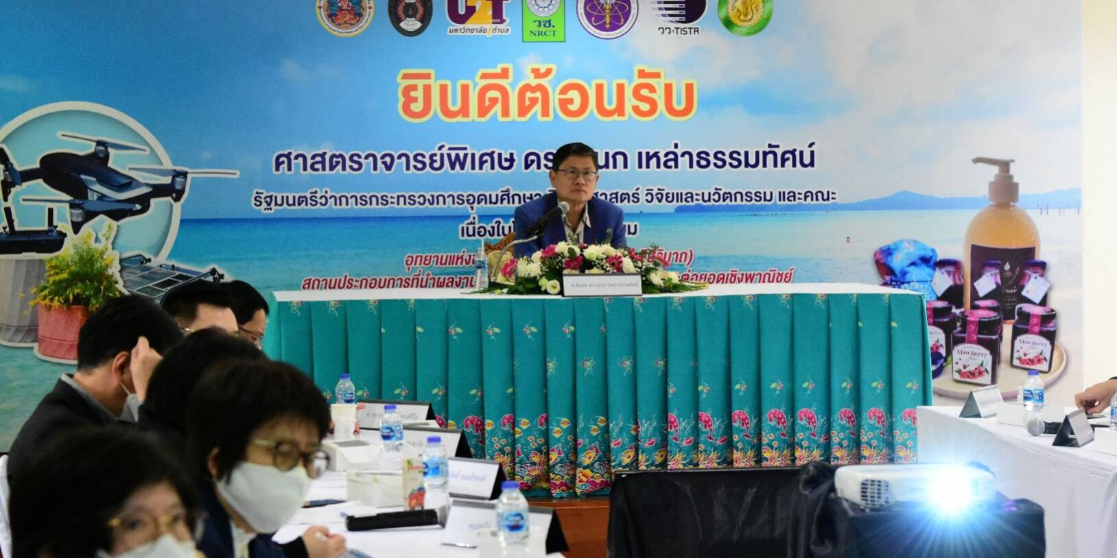 วันที่ 15 พ.ย.64 ที่อุทยานแห่งชาติสิรินาถ จังหวัดภูเก็ต : ศ.(พิเศษ) ดร.เอนก เหล่าธรรมทัศน์ รมว.การอุดมศึกษา วิทยาศาสตร์ วิจัยและนวัตกรรม (อว.) พร้อมด้วย ศ.นพ.ดร.สิริฤกษ์ ทรงศิวิไล ปลัด (อว.) และคณะ เดินทางมาตรวจเยี่ยม “โครงการทะเลไทยไร้ขยะ” ของมหาวิทยาลัยเกษตรศาสตร์ ภายใต้การสนับสนุนทุนวิจัยจากสำนักงานการวิจัยแห่งชาติ (วช.) และโครงการมหาวิทยาลัยสู่ตำบล สร้างรากแก้วให้ประเทศ หรือ U2T ของมหาวิทยาลัยราชภัฏภูเก็ต ที่ดำเนินกิจกรรมด้านการท่องเที่ยวและเศรษฐกิจสร้างสรรค์ จากนั้นได้เข้าเยี่ยมชมสถานประกอบการที่ประสบผลสำเร็จในการนำผลงานวิจัยและนวัตกรรมพัฒนาประสิทธิภาพกระบวนการผลิต และเพิ่มมูลค่าผลิตภัณฑ์ : แปรรูปเม็ดมะม่วงหิมพานต์ ผลิตภัณฑ์สารสกัดโปรตีน และผลิตภัณฑ์สารสกัดคอลลาเจนจากอุตสาหกรรมการเลี้ยงหอยมุก และผลิตภัณฑ์กะเพราแปรรูป ภายใต้แผนงาน “ครัวไทยสู่ตลาดโลก” โดยการสนับสนุนทุนจาก (วช.) และสถาบันวิจัยวิทยาศาสตร์และเทคโนโลยีแห่งประเทศไทย (วว.) ที่บริษัท เมธีภูเก็ต จำกัด ,อินทรฟาร์ม และ ร้าน Blue Elephant Phuket