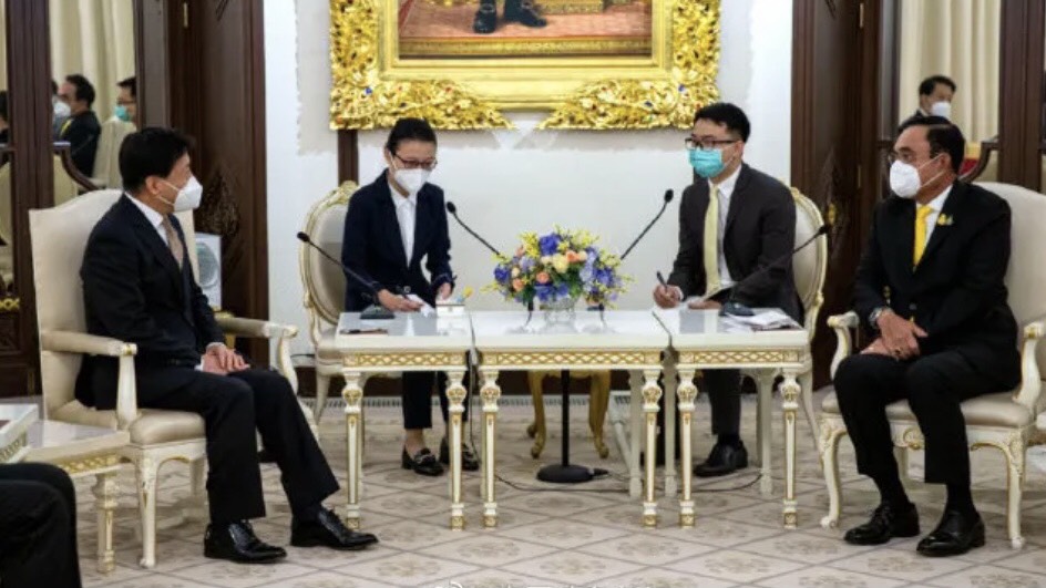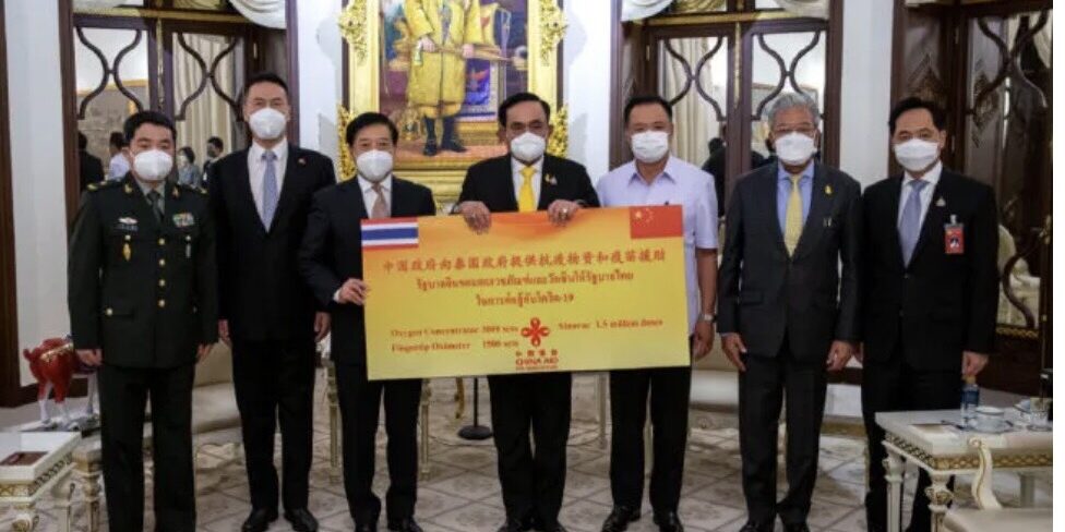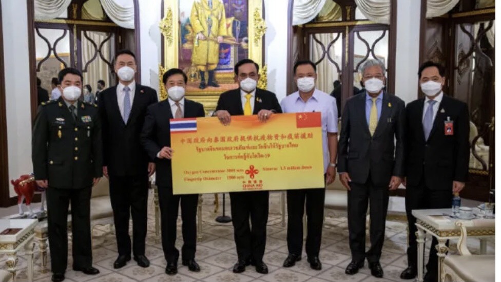 นายหาน จื้อเฉียง (韩志强) เอกอัครราชทูตจีนประจำประเทศไทย (中国驻泰大使เข้าเยี่ยมคำนับ พลเอก ประยุทธ์ จันทร์โอชา นายกรัฐมนตรีไทยและ รมต.กลาโหม มอบวัคซีนป้องกันโควิด-19