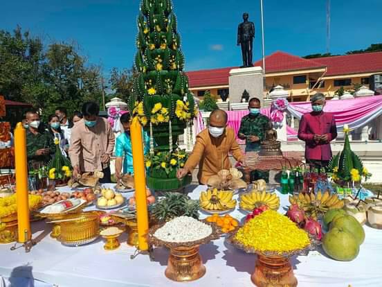 นายศราวุธ ทรงโฉม นายอำเภอห้วยทับทัน เป็นประธานบวงสรวงสักการะสิ่งศักดิ์ประจำอำเภอห้วยทับทัน เนื่องในงานงานเฉลิมฉลอง ๒๓๙ ปี จังหวัดศรีสะเกษ “สู่ขวัญบ้าน บายศรีเมือง รุ่งเรือง ๒๓๙ ปี จังหวัดศรีสะเกษ” ณ บริเวณหน้าพระบรมราชานุสาวรีย์พระบาทสมเด็จพระจุลจอมเกล้าเจ้าอยู่หัว สนามหน้าที่ว่าการอำเภอห้วยทับทัน อำเภอห้วยทับทัน จังหวัดศรีสะเกษ