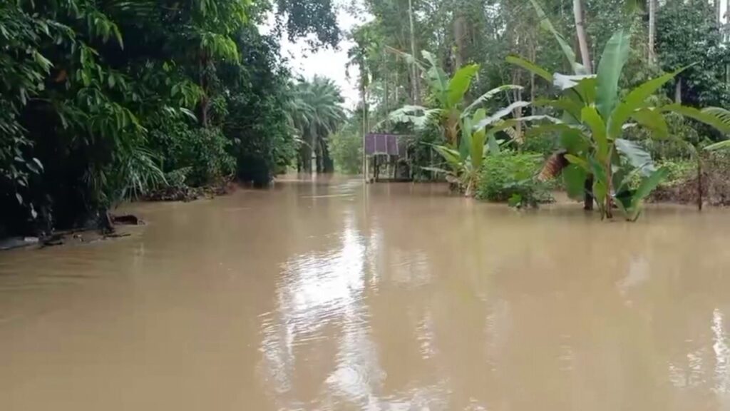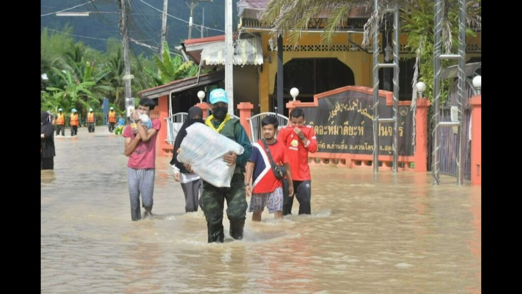 วันนี้ 18 พ.ย.2564 พ.อ. เรวัตร เซ่งเข็ม ผู้บังคับกองพันทหารราบที่ 2 กรมทหารราบที่ 5 / ผู้อำนวยการศูนย์บรรเทาสาธารณภัย กองพันทหารราบที่ 2 กรมทหารราบที่ 5 พร้อมด้วยทหาร ร่วมกับเจ้าหน้าที่หลายหน่วยลงพื้นที่ช่วยชาวบ้านขนของขึ้นที่สูงหนีน้ำพร้อมทั้งได้นำรถแม็คโคเร่งขุดลอกเอากิ่งไม้ และเศษขยะที่ถูกน้ำพัดพามากีดขวางทางน้ำ อยู่ที่คอสะพาน ทำให้มวลน้ำเกิดการไหลช้า และไหลล้นตลิ่งเข้าท่วมบ้านเรือน เนื่องจากสภาพอากาศท้องฟ้าในจังหวัดสตูล ยังมืดครึ้ม บางพื้นที่มีฝนตก ในขณะที่มวลน้ำจากตามภูเขาที่ได้สะสมกับน้ำฝนที่ตกมาหลายวันไหลเข้าท่วมบ้านชาวบ้านในพื้นที่จังหวัดสตูล ที่เป็นเส้นทางน้ำในขณะนี้ล่าสุดน้ำได้เข้าท่วมพื้นที่อำเภอควนโดน จังหวัดสตูล หลายหมู่บ้าน ชาวบ้านเดือดร้อน ทางอำเภอควนโดนประเมินบ้านเรือนที่ได้รับผลกระทบจากท้องถิ่น จำนวน 300 ครัวเรือน