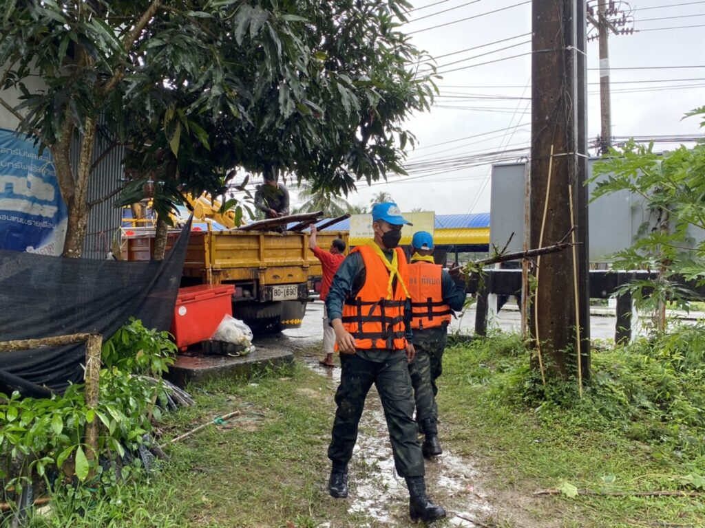 ทั้งนี้มีรายงานเข้ามาว่า พ.อ.เรวัตร เซ่งเข็ม ผู้บังคับกองพันทหารราบที่ 2 กรมทหารราบที่ 5 / ผู้อำนวยการศูนย์บรรเทาสาธารณภัย กองพันทหารราบที่ 2 กรมทหารราบที่ 5 ยังคงสั่งเสริมชุดกำลังพลทหารไว้ เพื่อสแตนบายในพื้นที่ริมชายฝั่ง และส่งสายตรวจทหาร ลงไปยังพื้นที่จุดเสี่ยงมวลน้ำที่จะไหลเข้าท่วม รีบขนของขึ้นที่สูงทันที